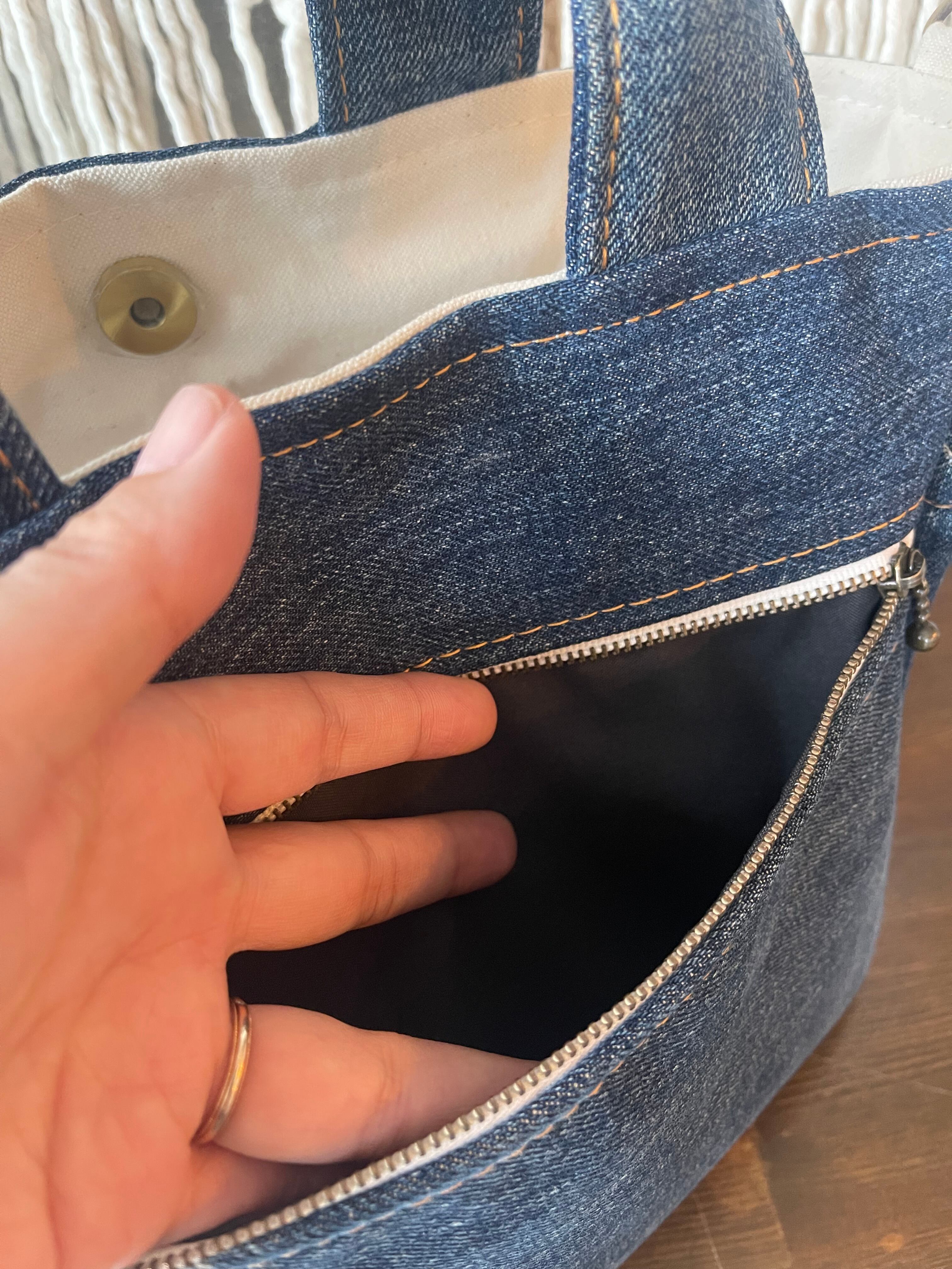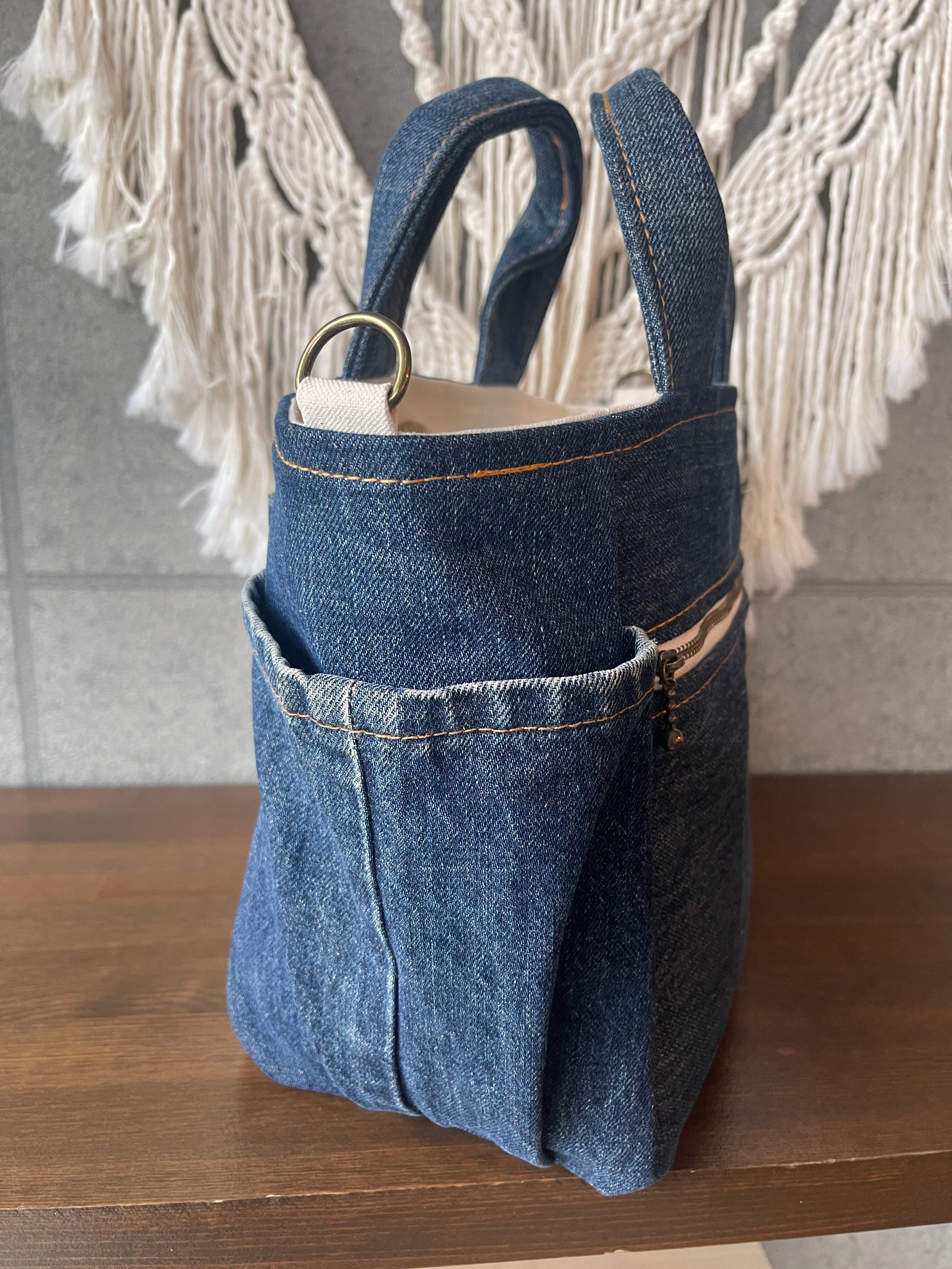 ヴィンテージデニムを使用しており、古着ならではの風合いや色落ちを楽しんでいただけたらと思います♪