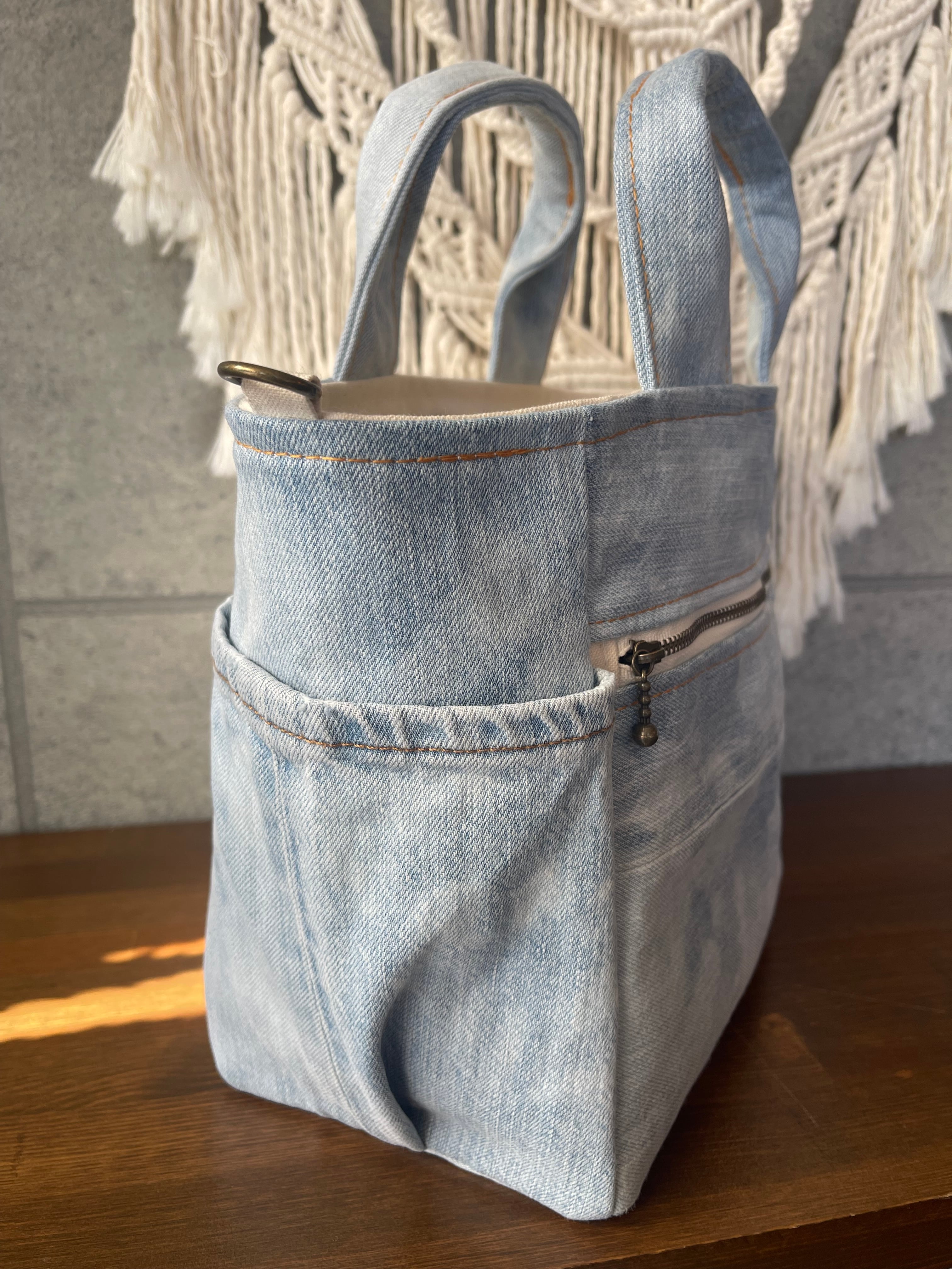 ヴィンテージデニムを使用しており、古着ならではの風合いや色落ちを楽しんでいただけたらと思います♪