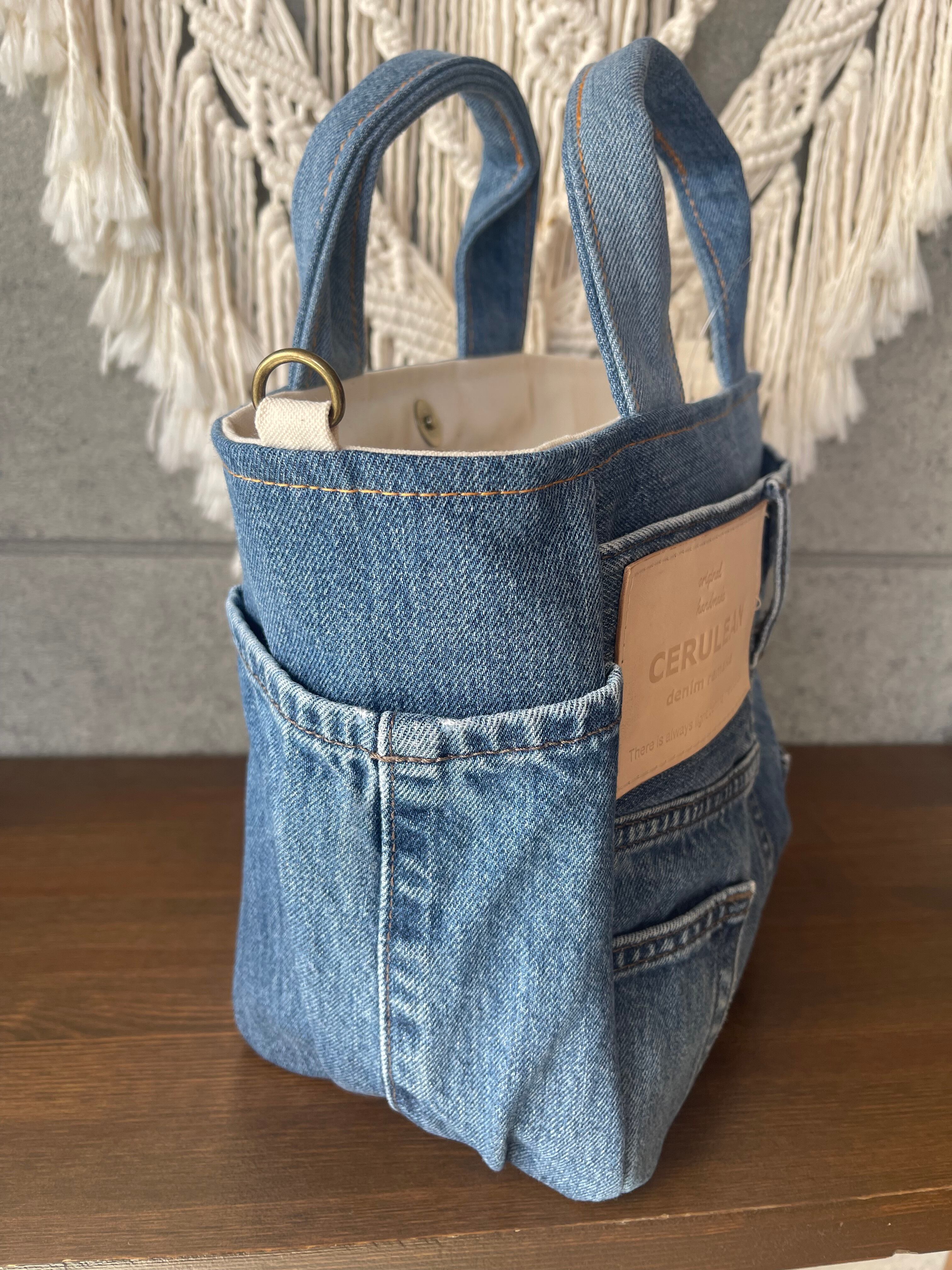 ヴィンテージデニムを使用しており、古着ならではの風合いや色落ちを楽しんでいただけたらと思います♪