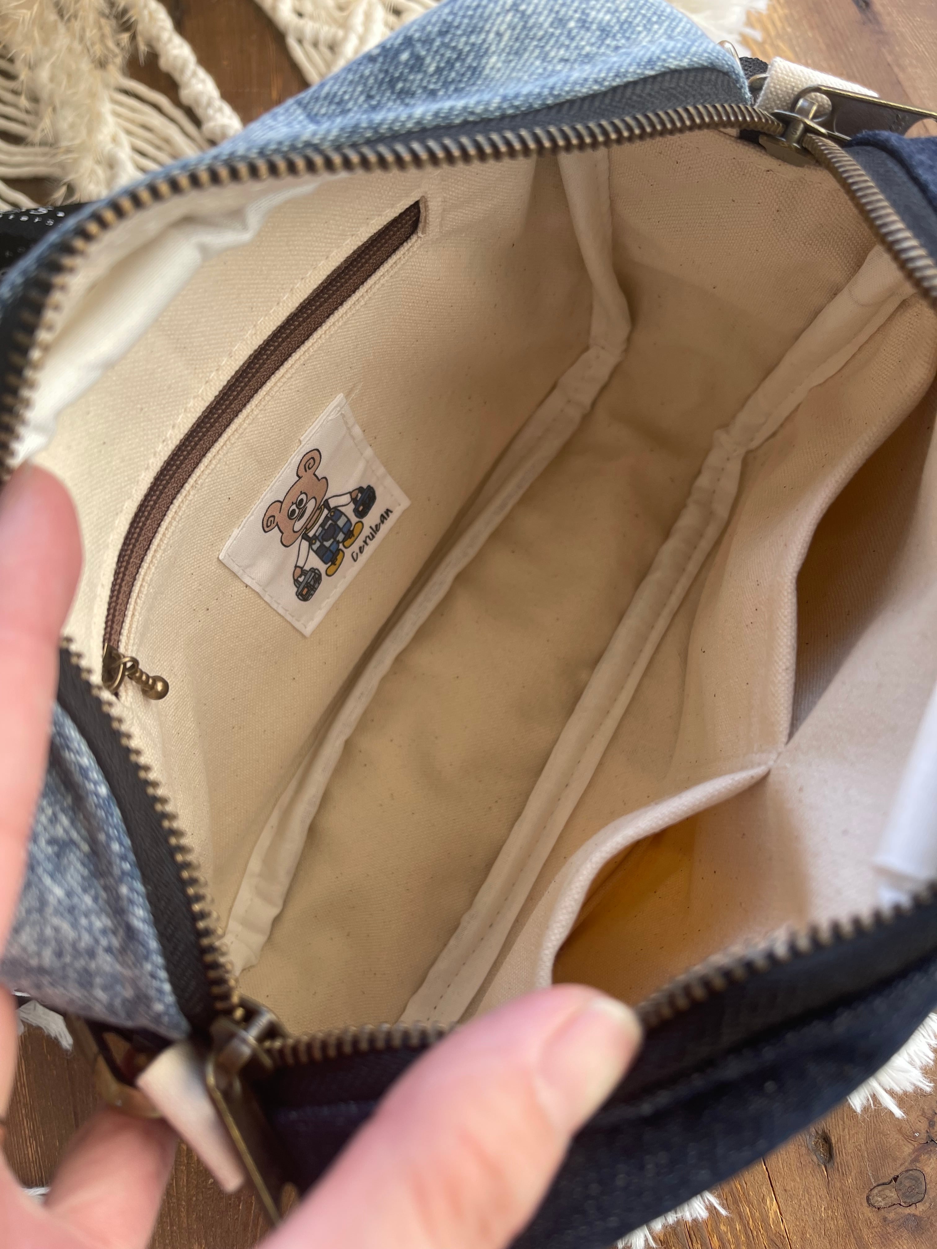 数種類のデニムをを組み合わせたポシェットです。