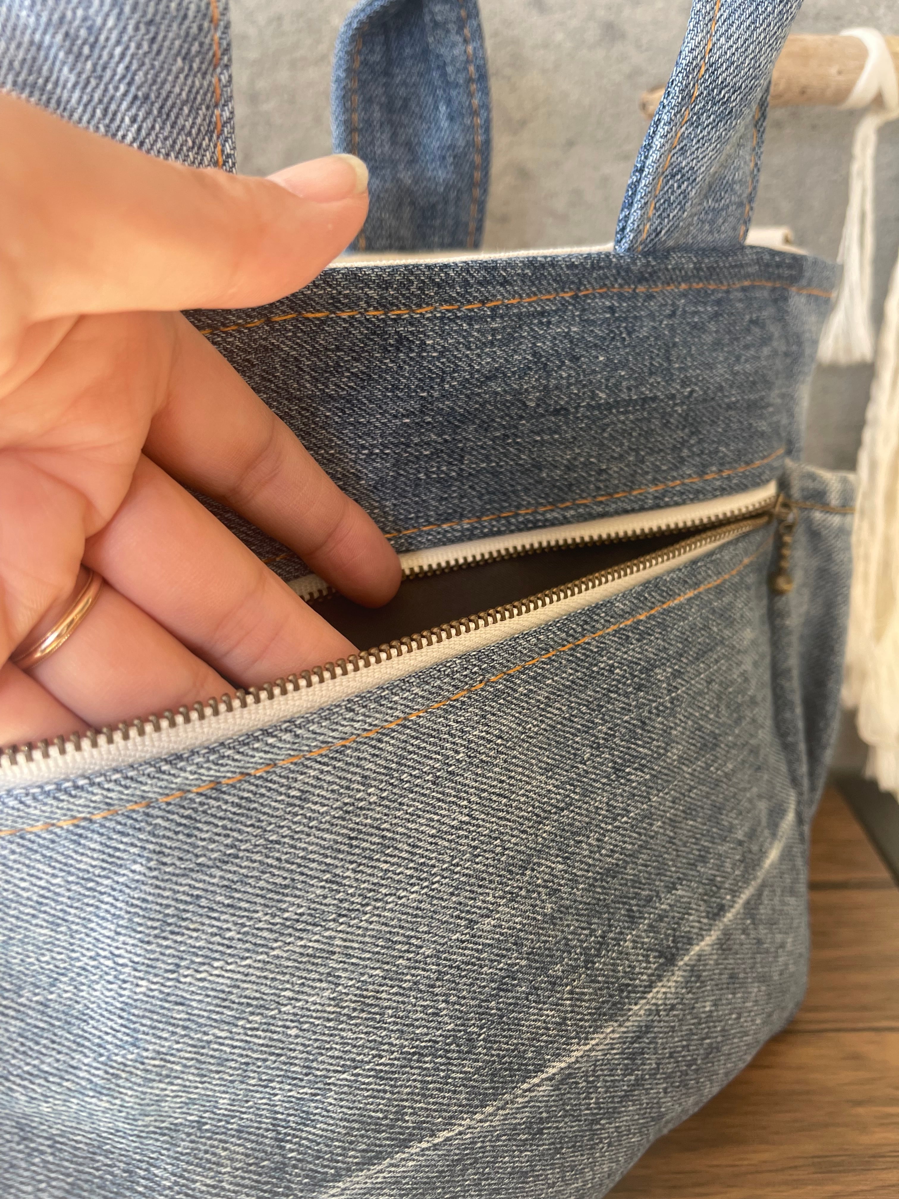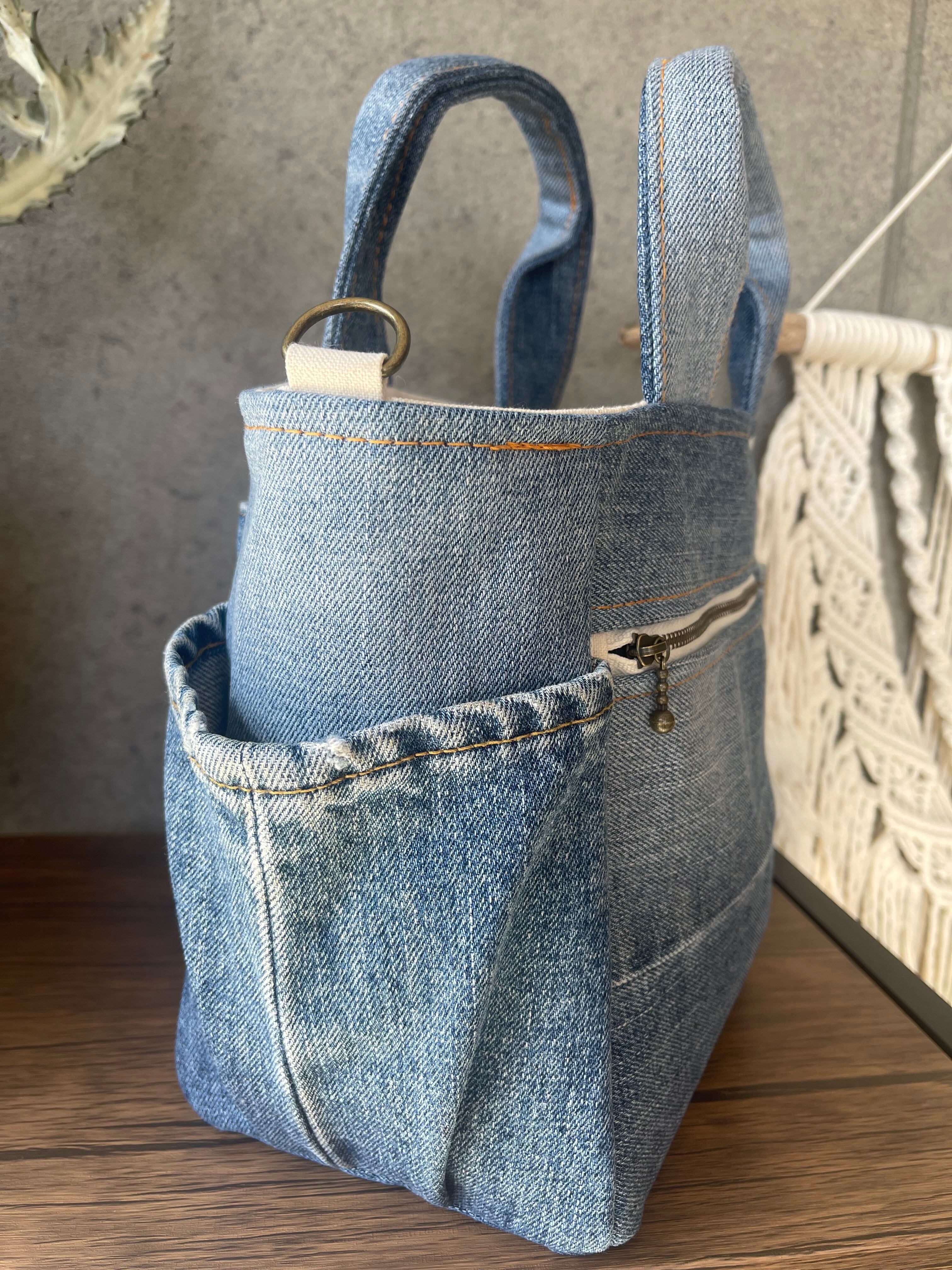 ヴィンテージデニムを使用しており、古着ならではの風合いや色落ちを楽しんでいただけたらと思います♪