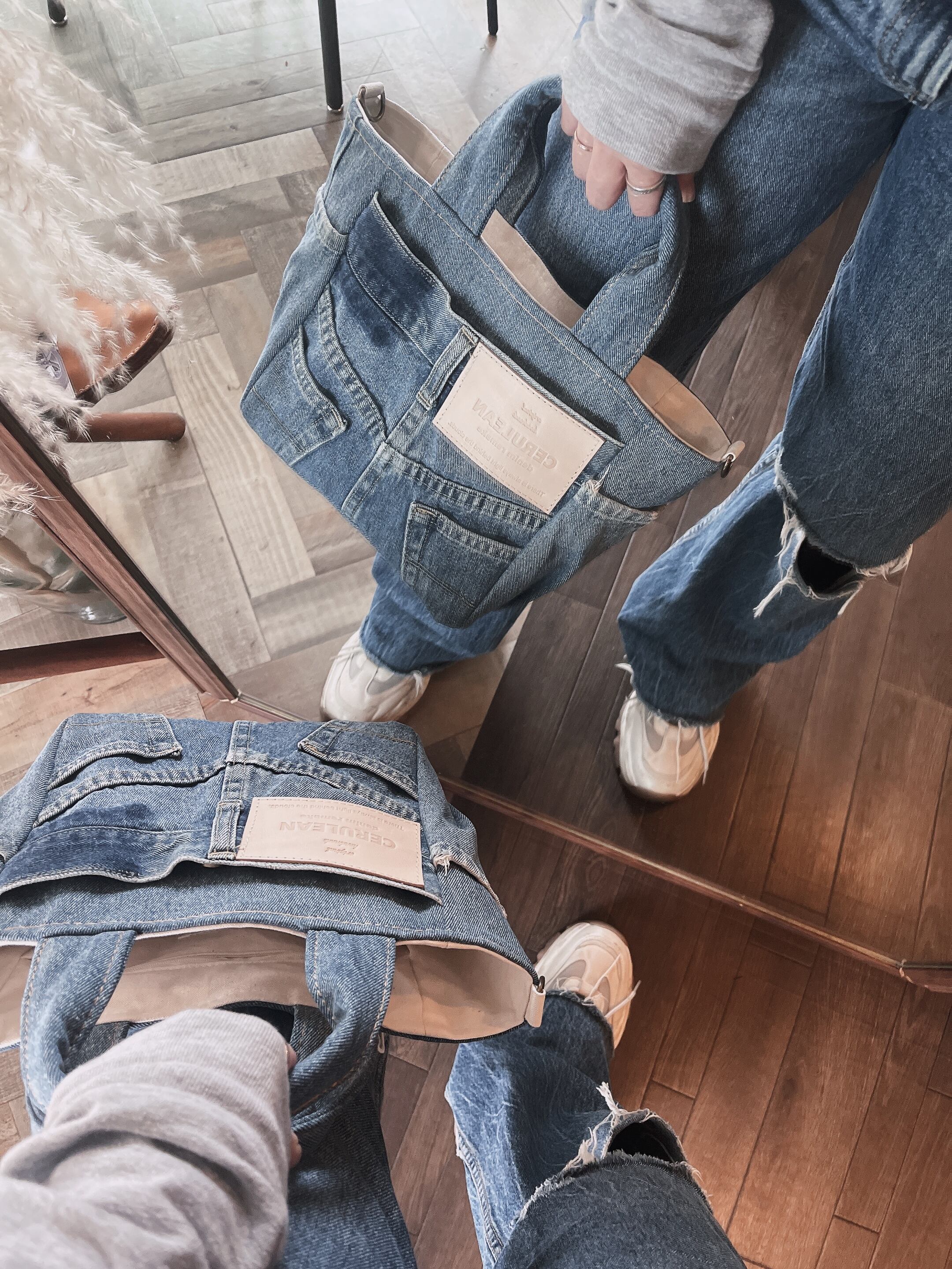 ヴィンテージデニムを使用しており、古着ならではの風合いや色落ちを楽しんでいただけたらと思います♪