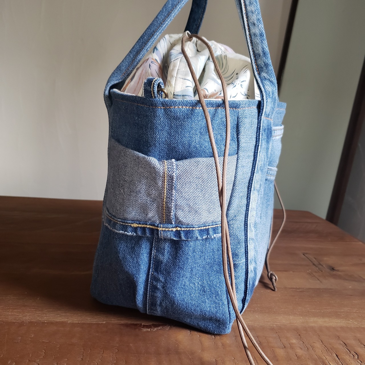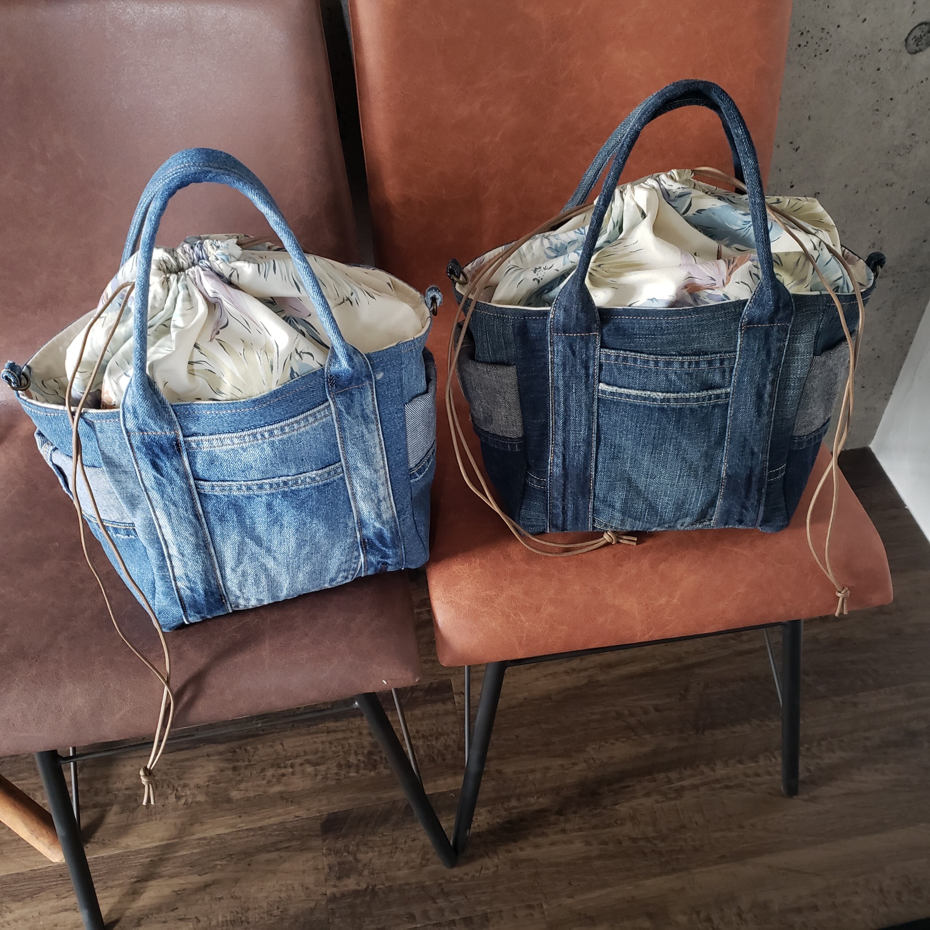 ヴィンテージデニムを使用しており、古着ならではの風合いや色落ちを楽しんでいただけたらと思います♪