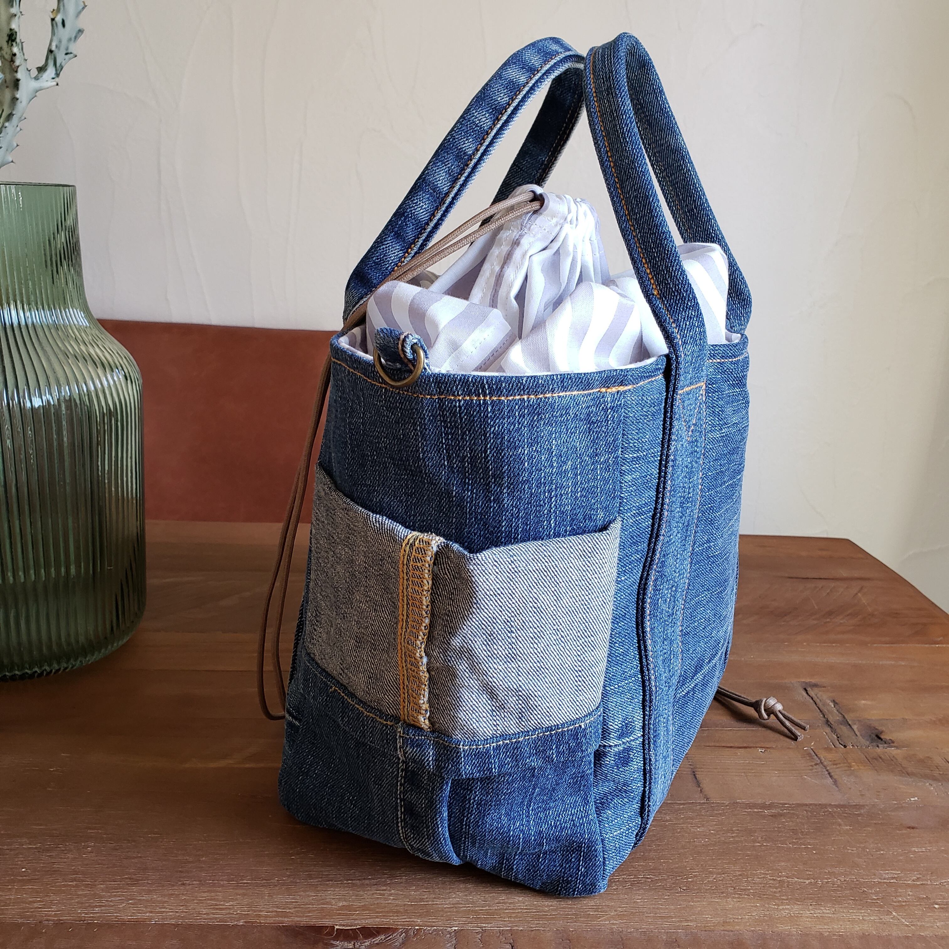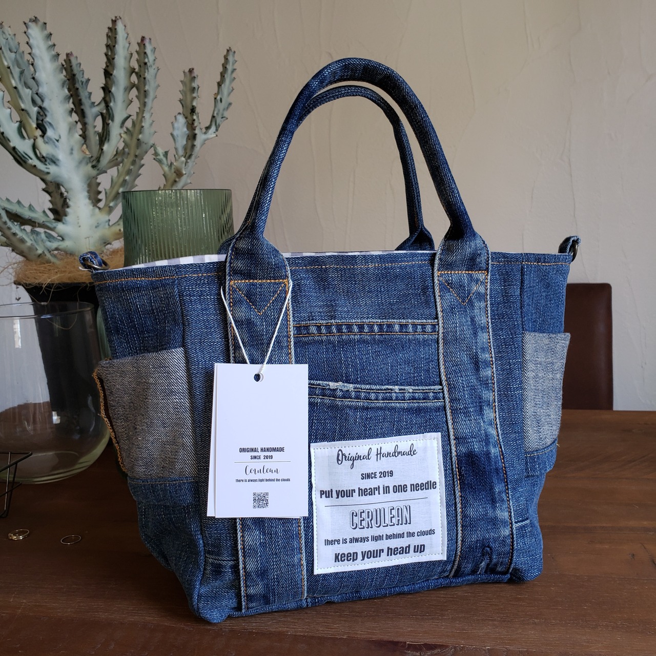 ヴィンテージデニムを使用しており、古着ならではの風合いや色落ちを楽しんでいただけたらと思います♪