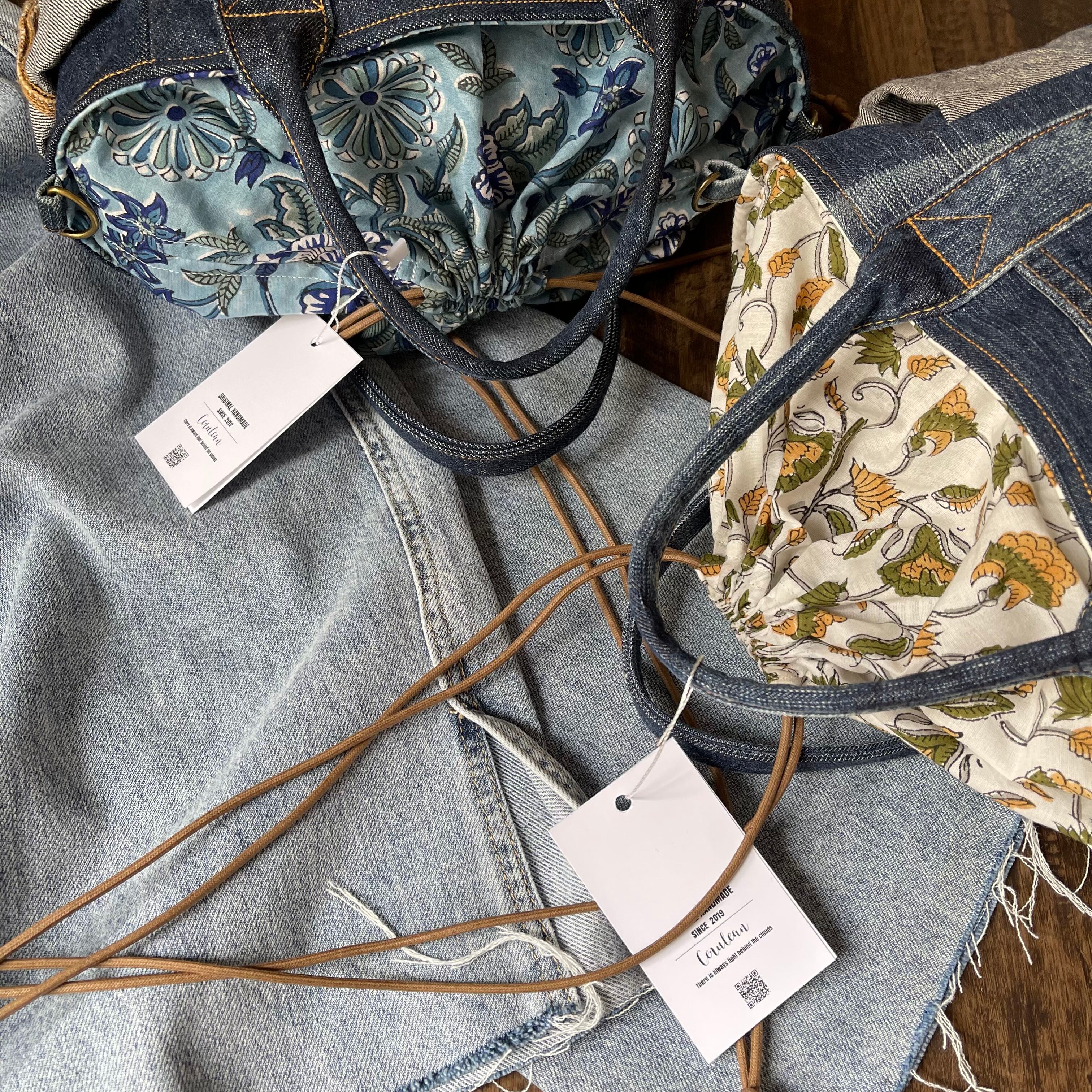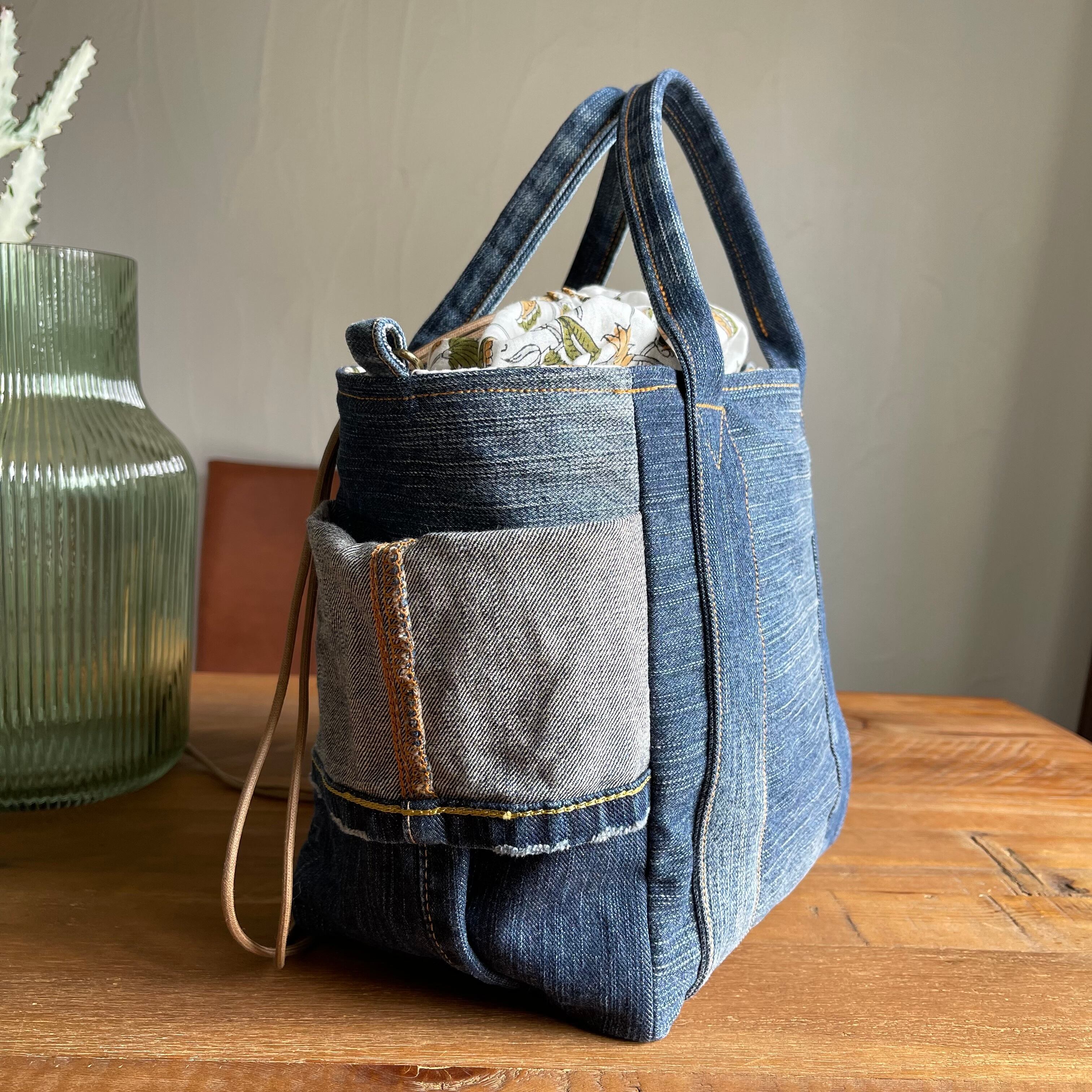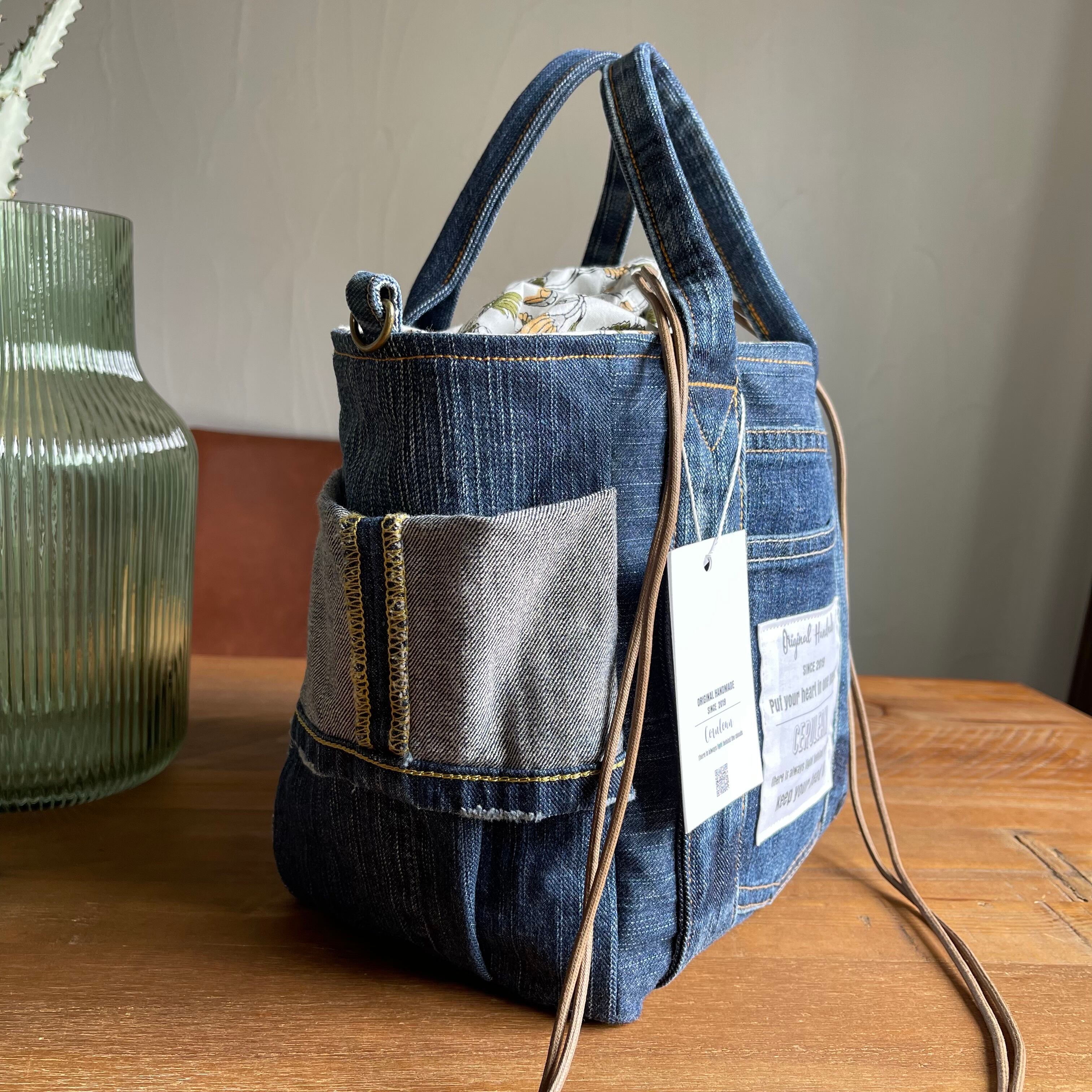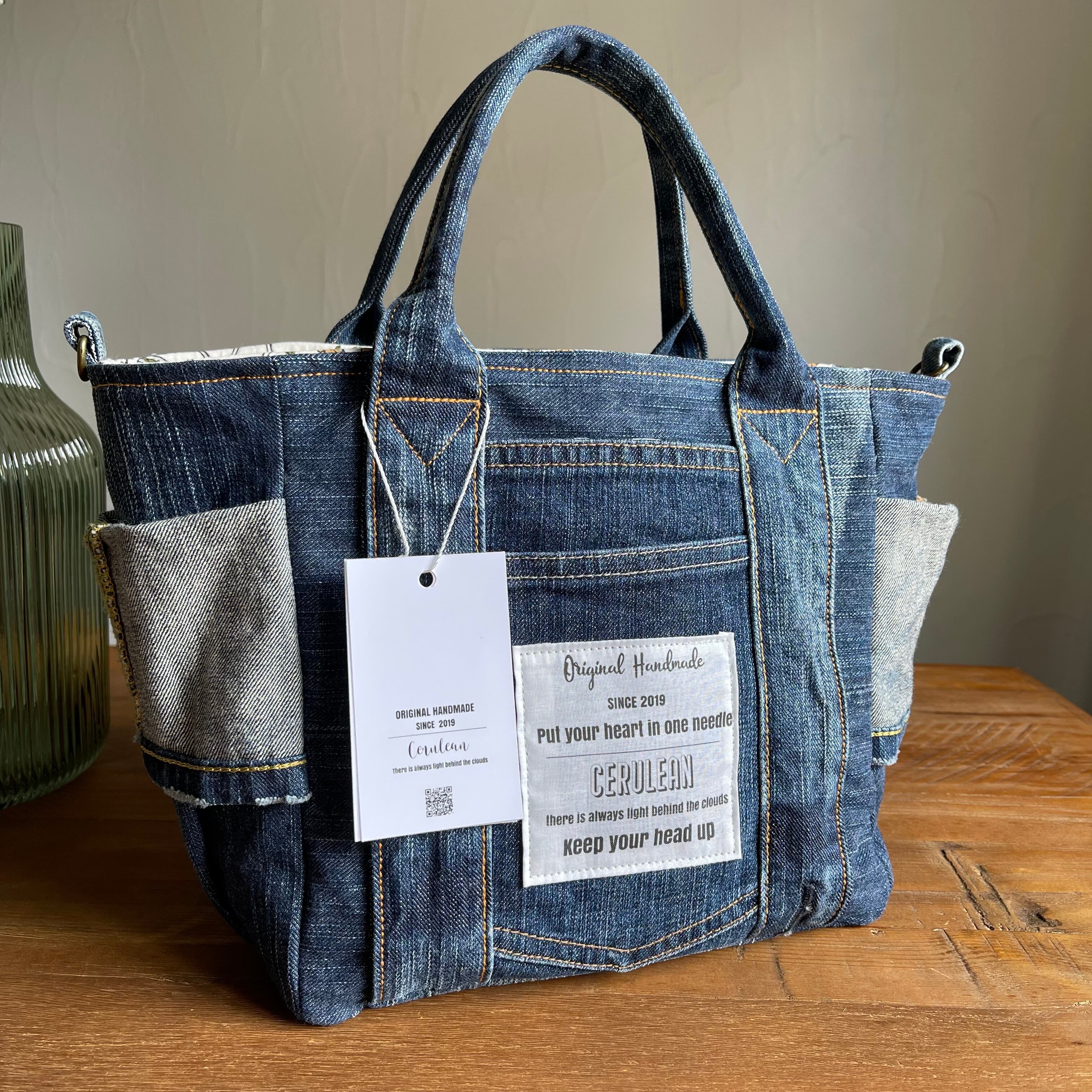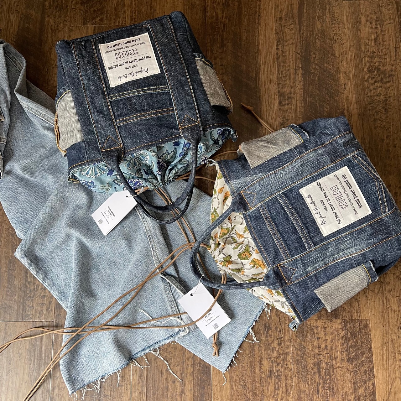 ヴィンテージデニムを使用しており、古着ならではの風合いや色落ちを楽しんでいただけたらと思います。