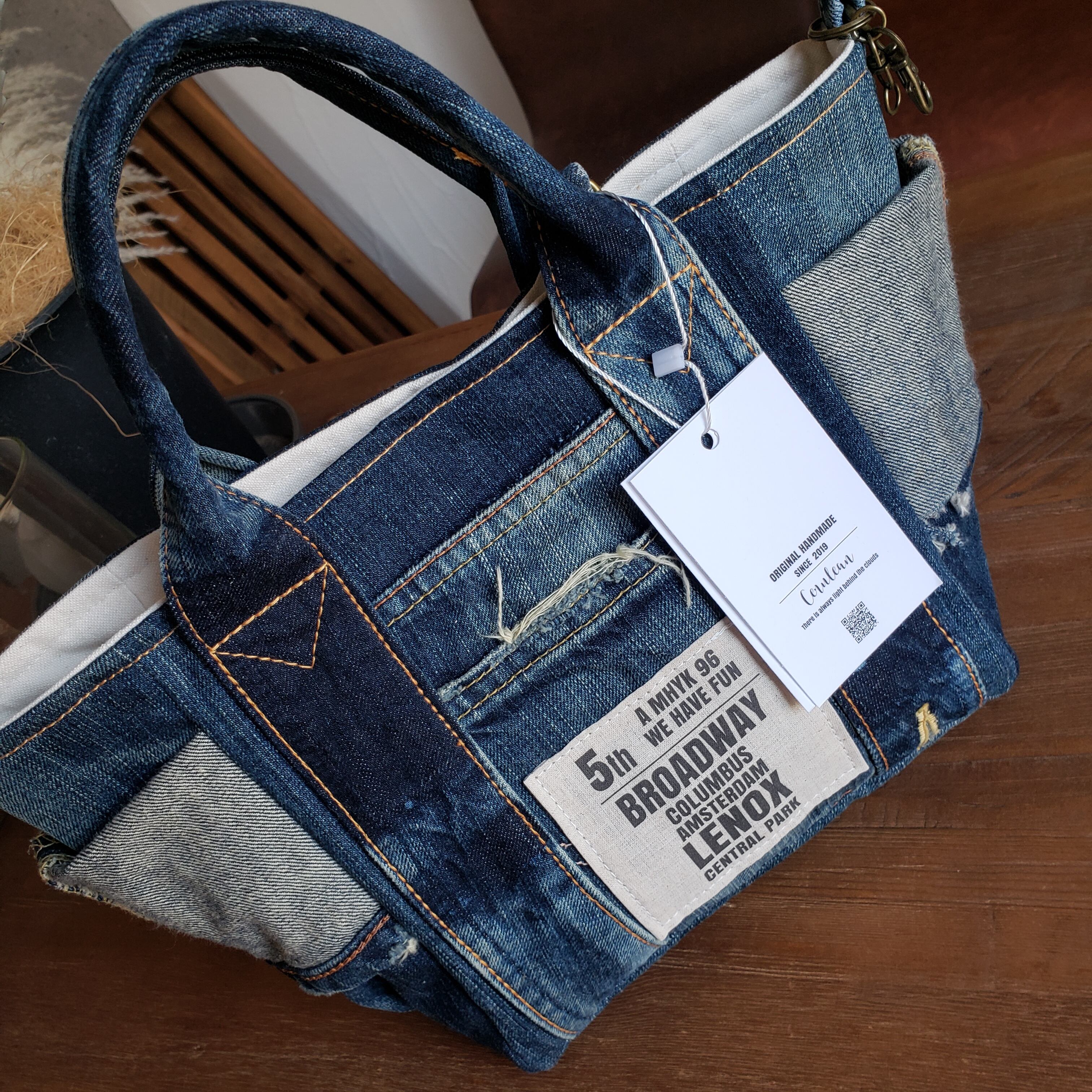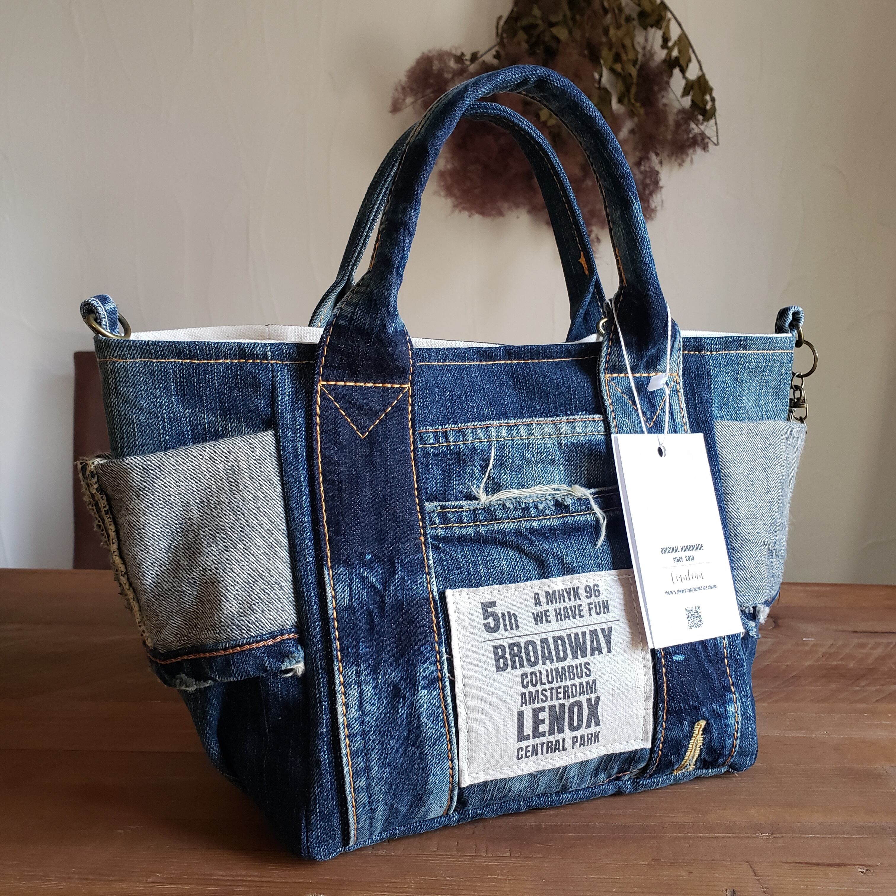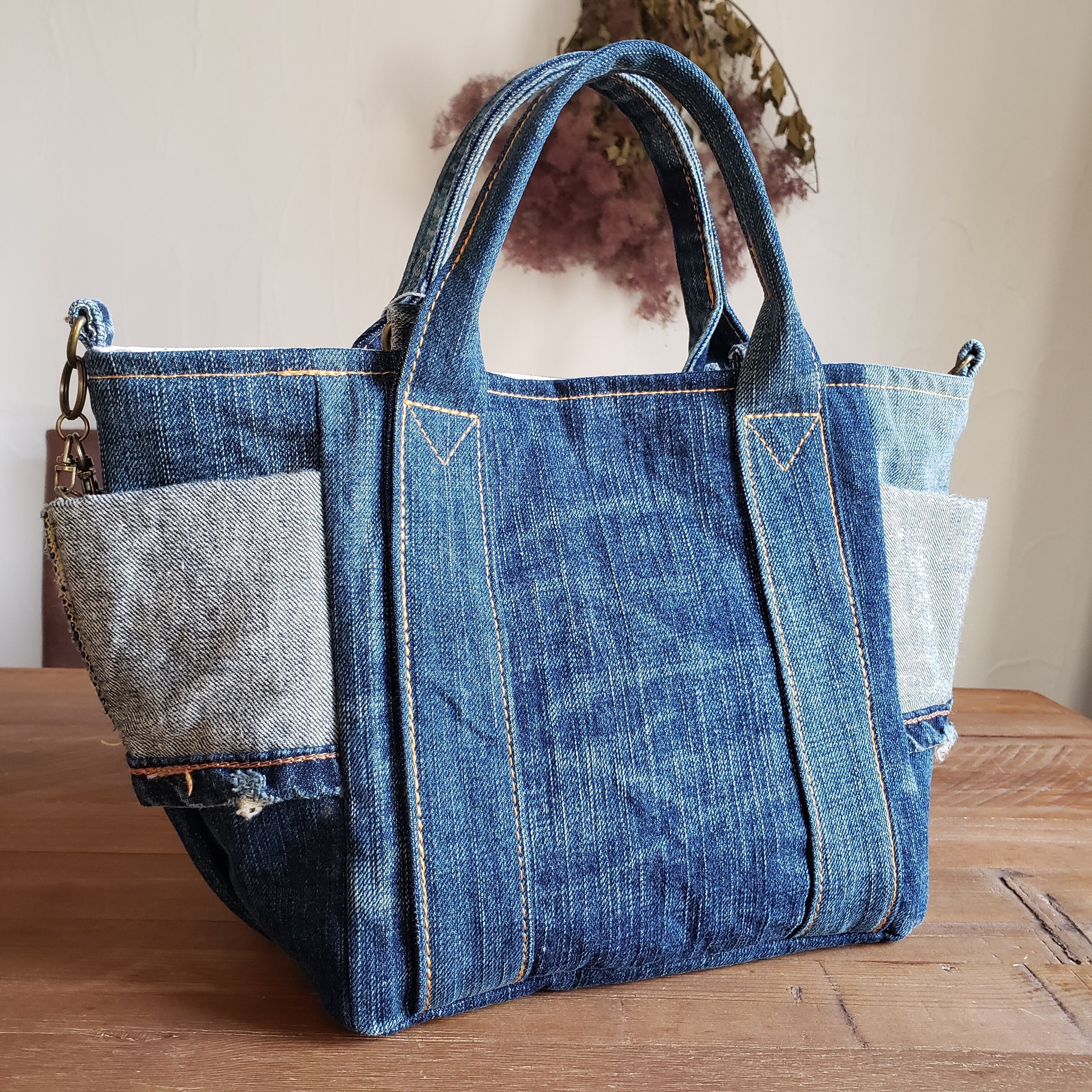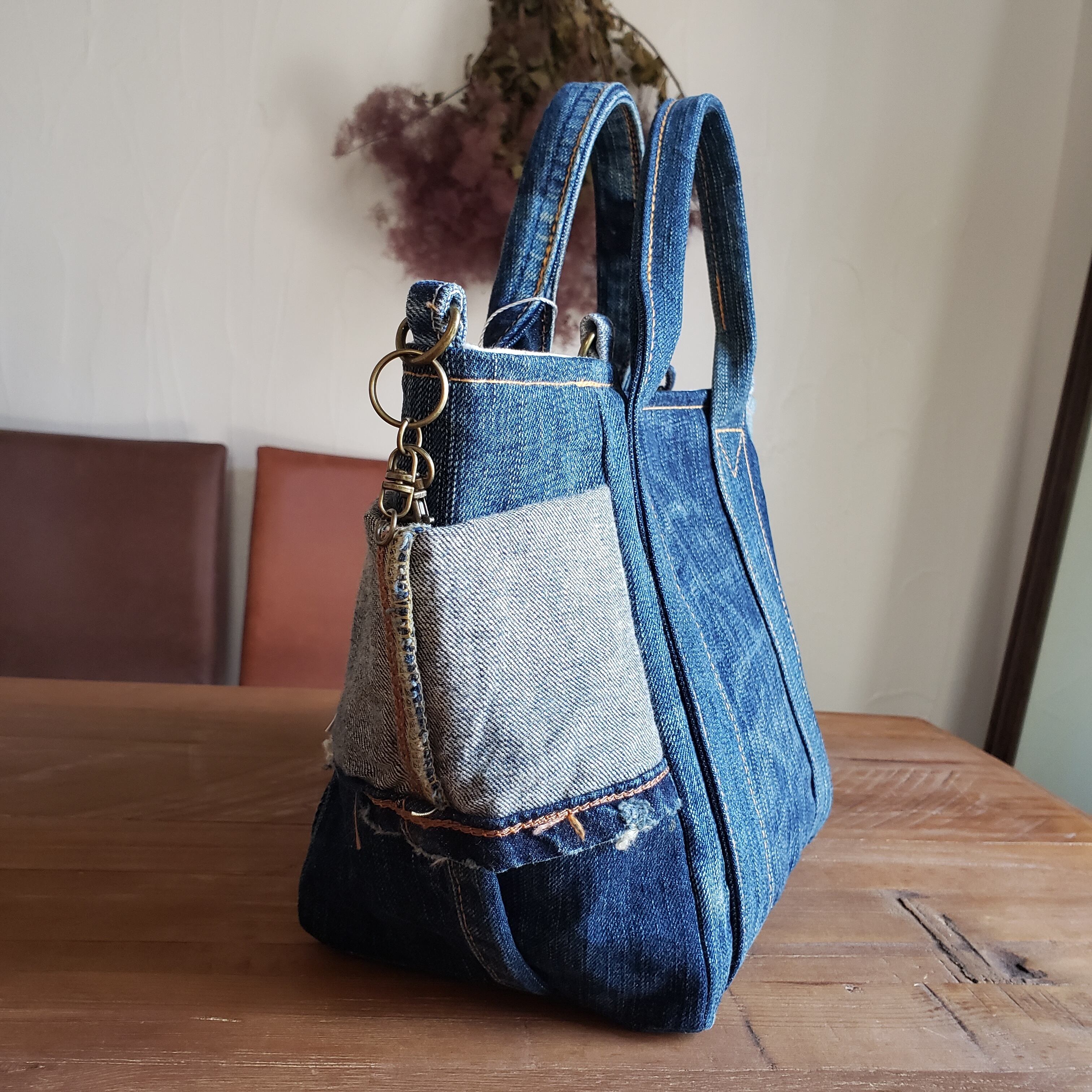 ヴィンテージデニムを使用しているので、同じものは作れません。一点物のトートバッグになります(^^)