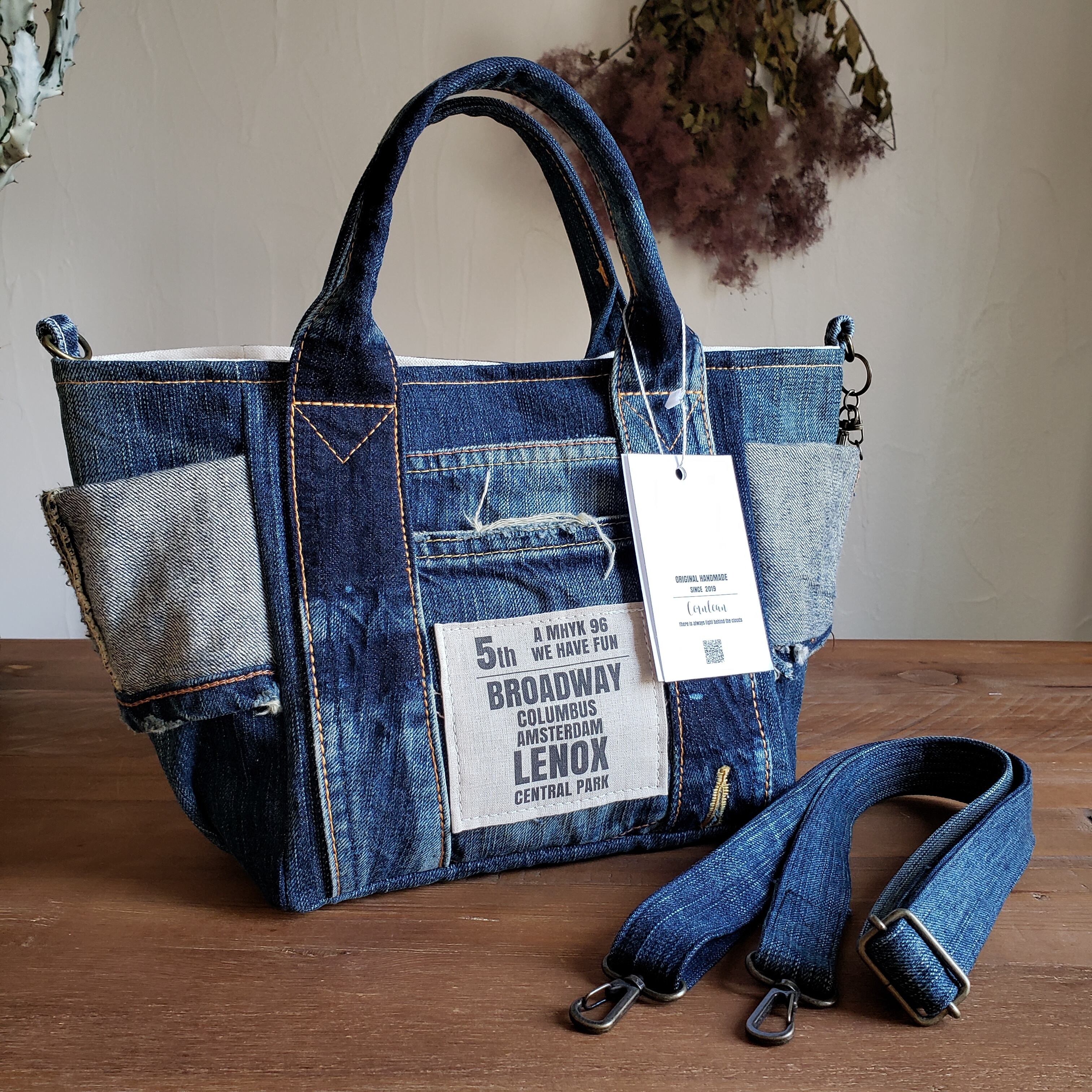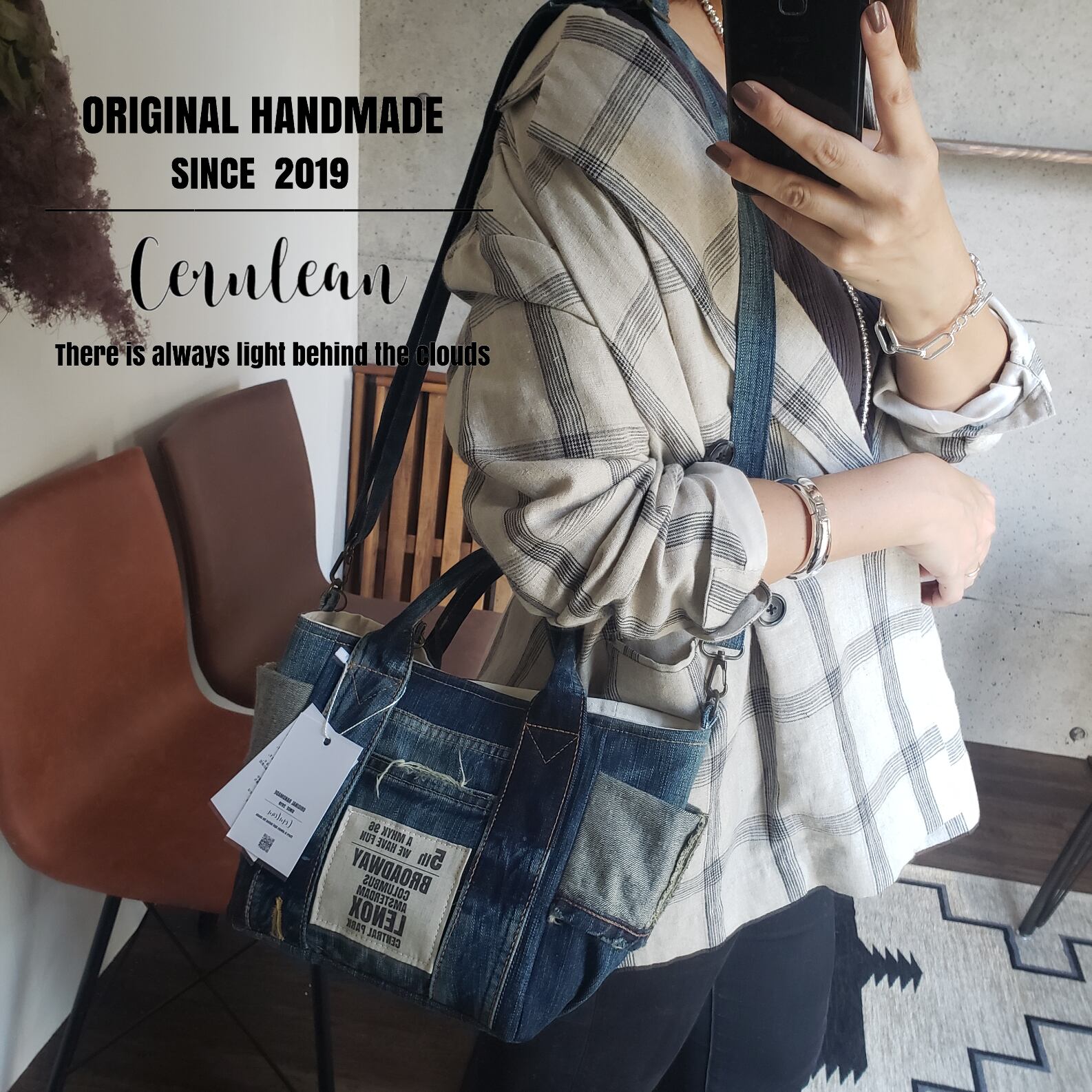 C70*デニムリメイクショルダー紐付きトートバッグ
