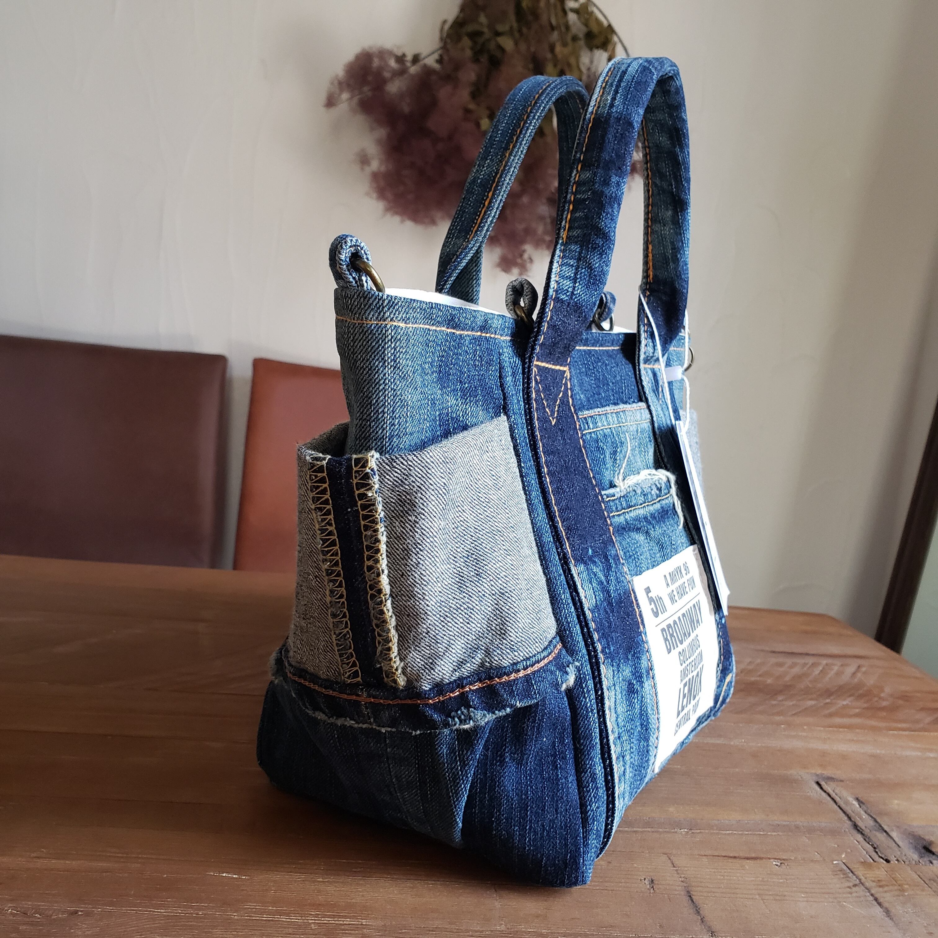 Usedデニムをリメイクしたショルダー紐付きトートバッグです。