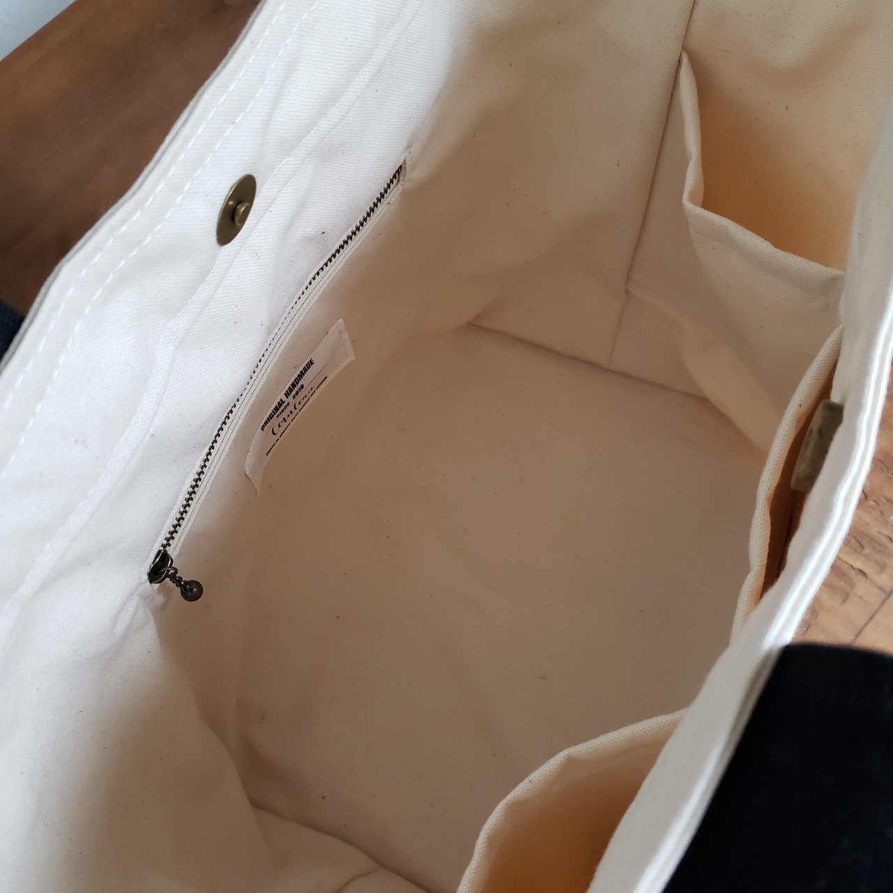 11号帆布×持ち手にロゴテープを付けたトートバッグになります。
