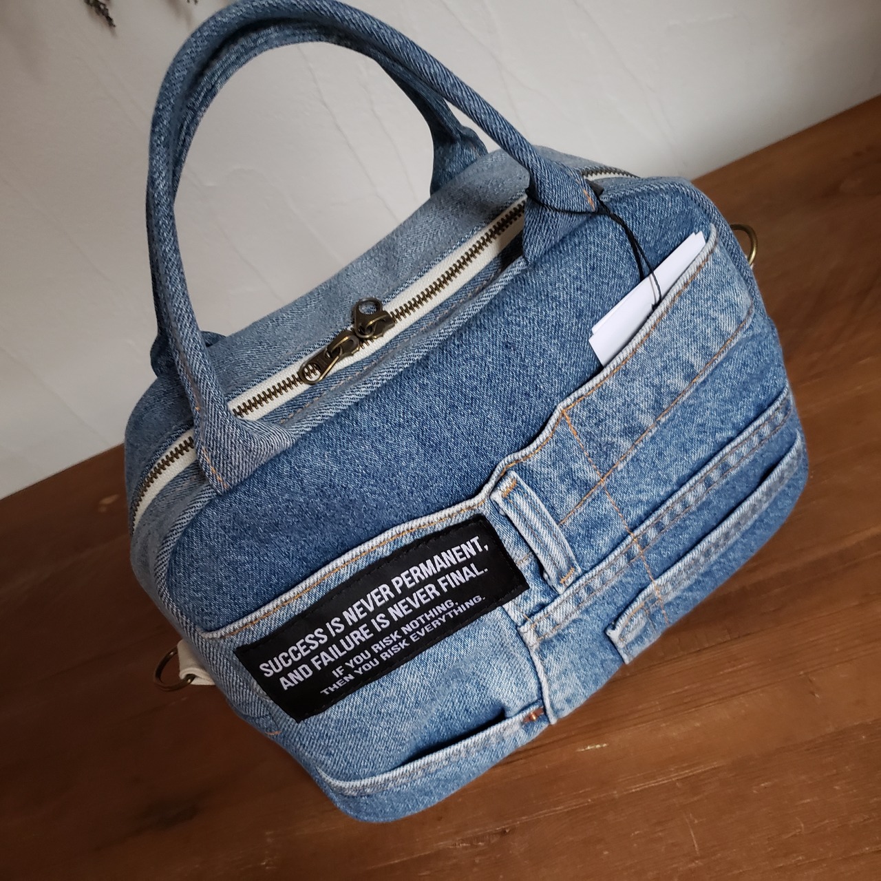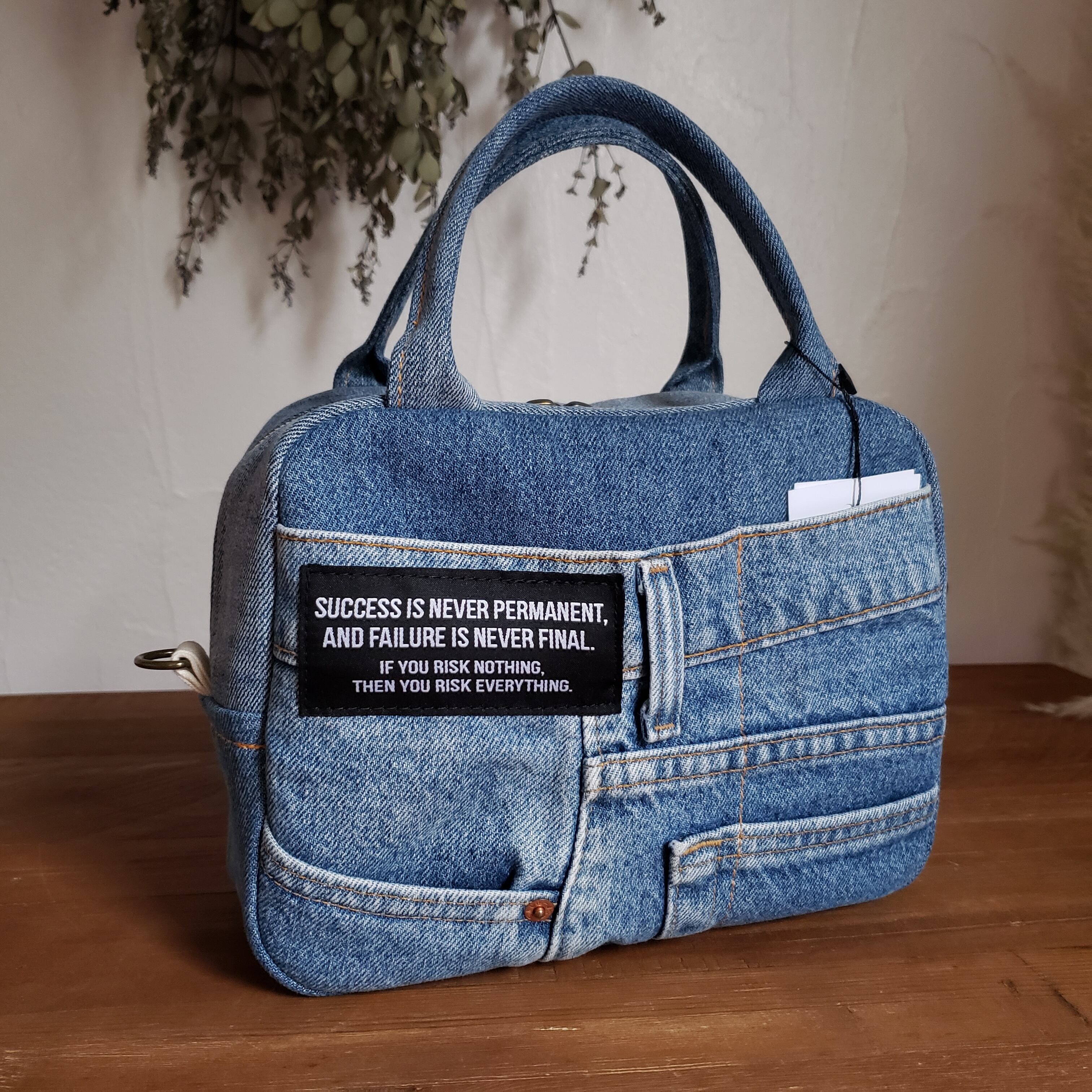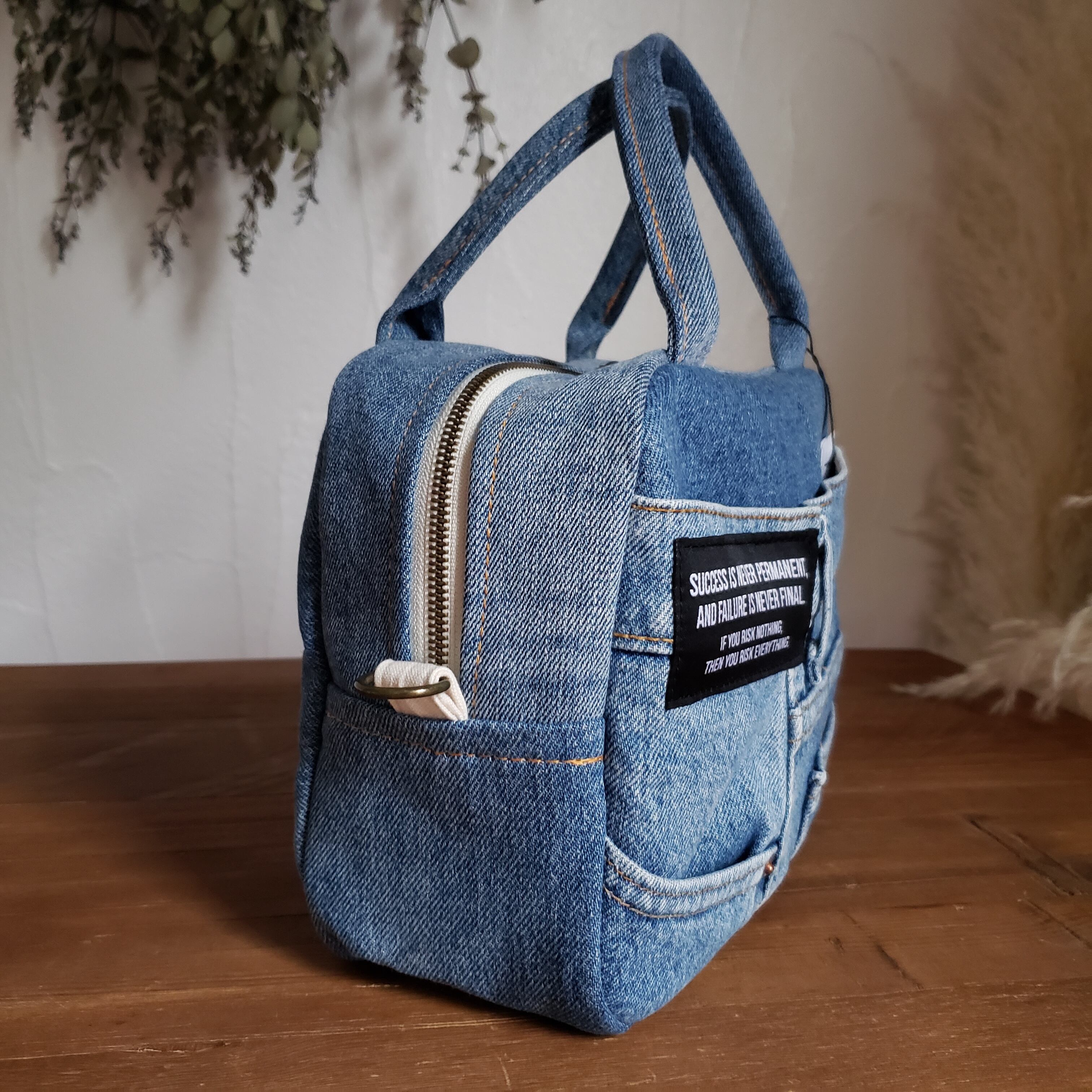 -デニムをリメイクした2wayボストンバッグ-