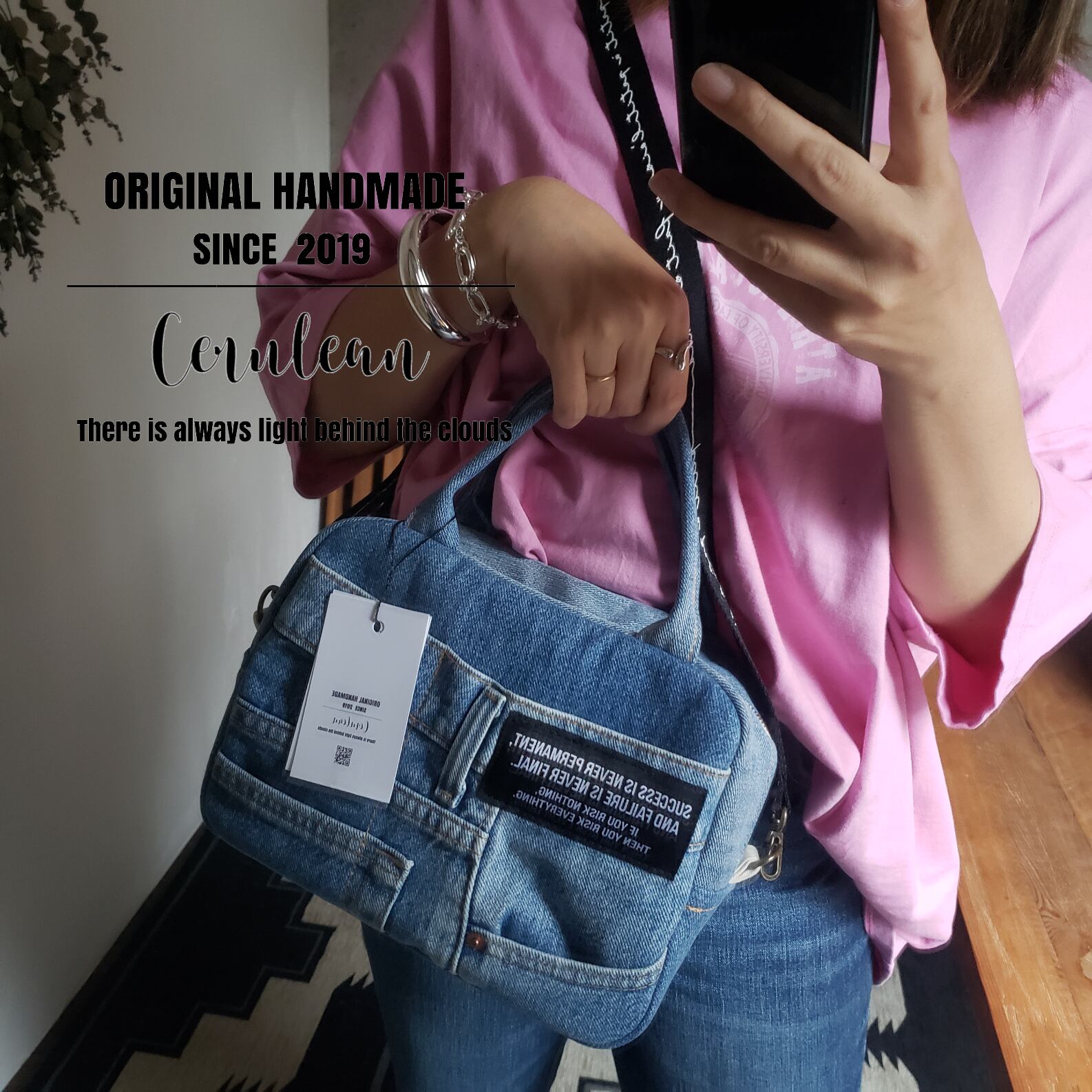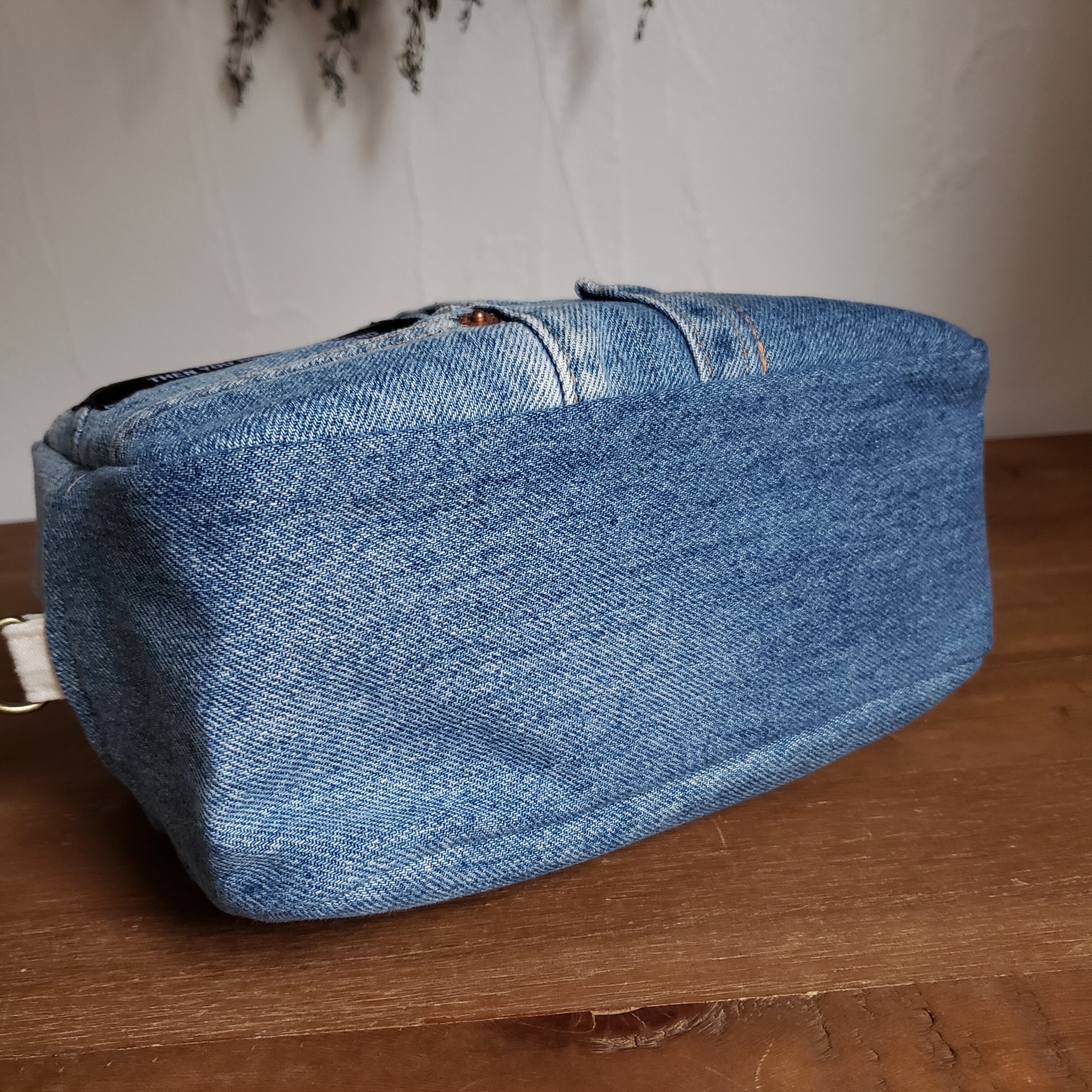 usedデニムをリメイクしたミニボストンバッグです。