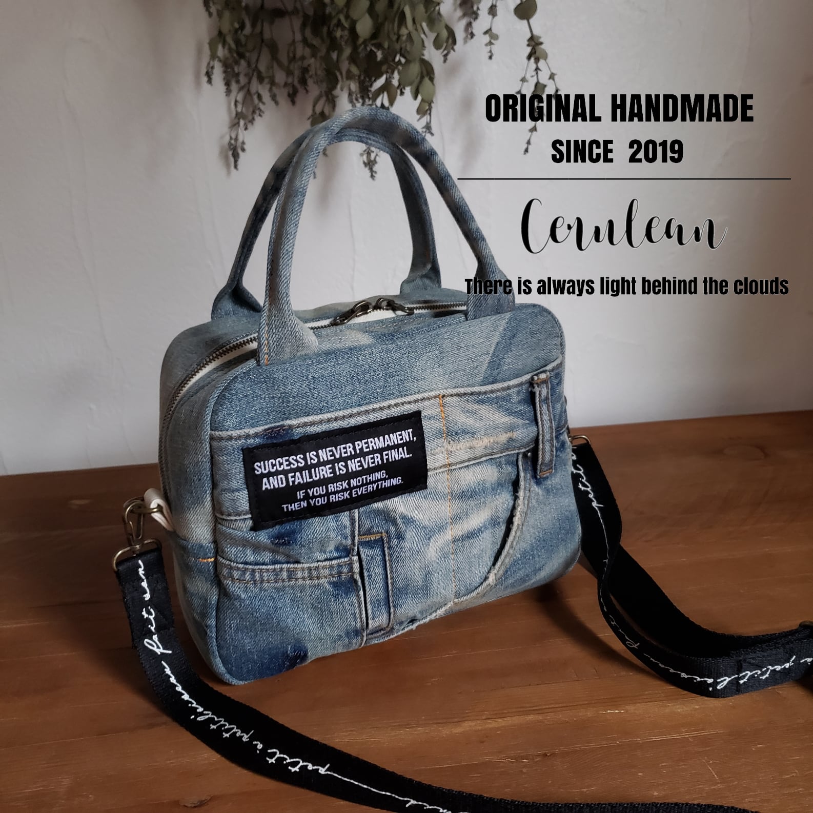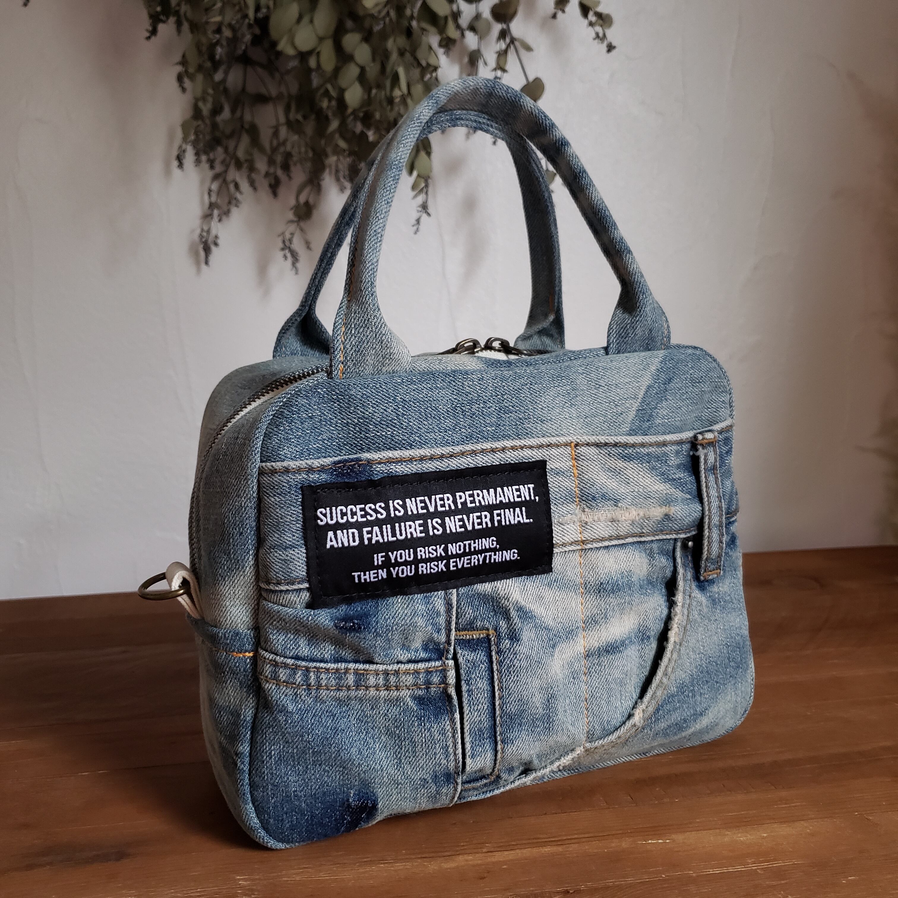 -デニムをリメイクした2wayボストンバッグ-