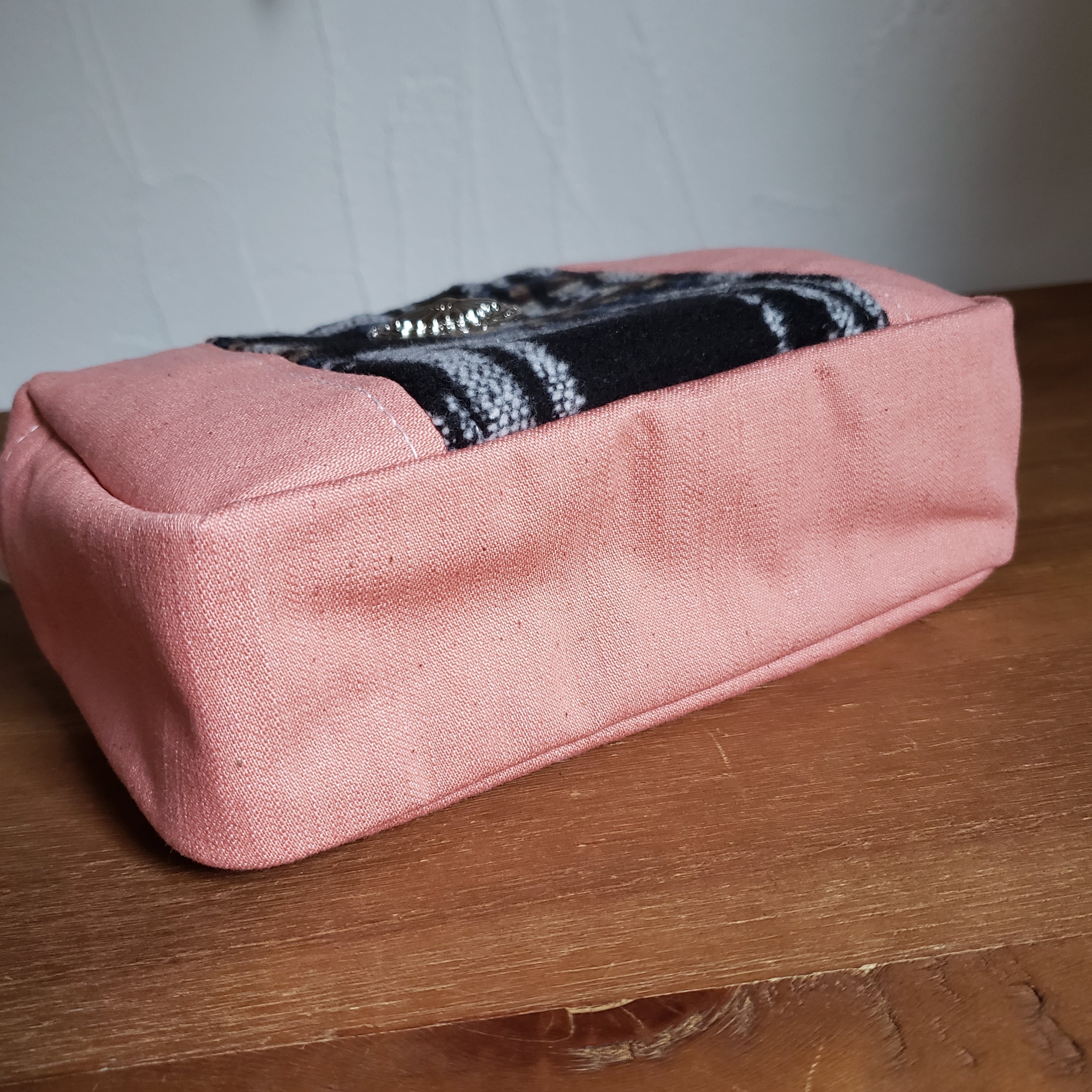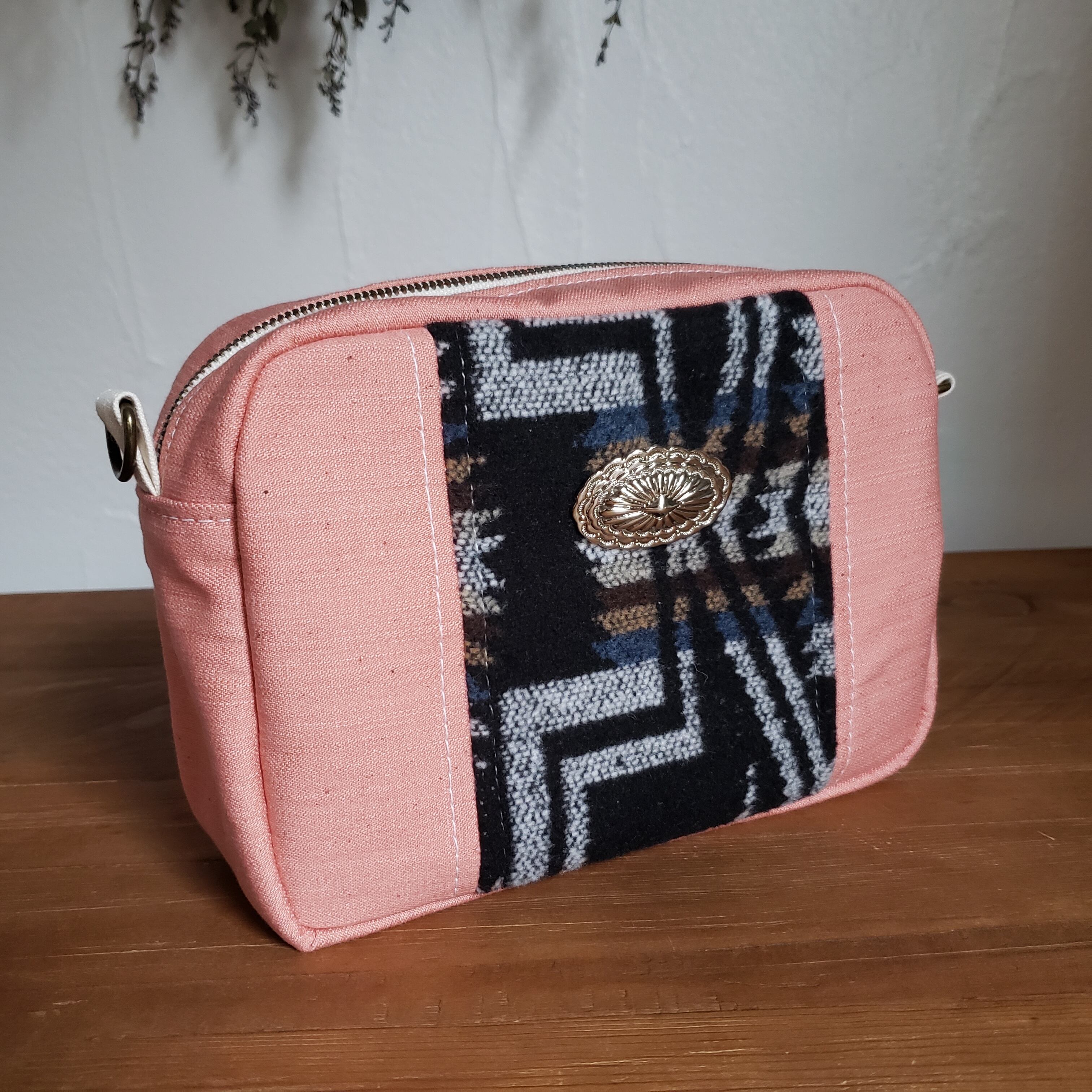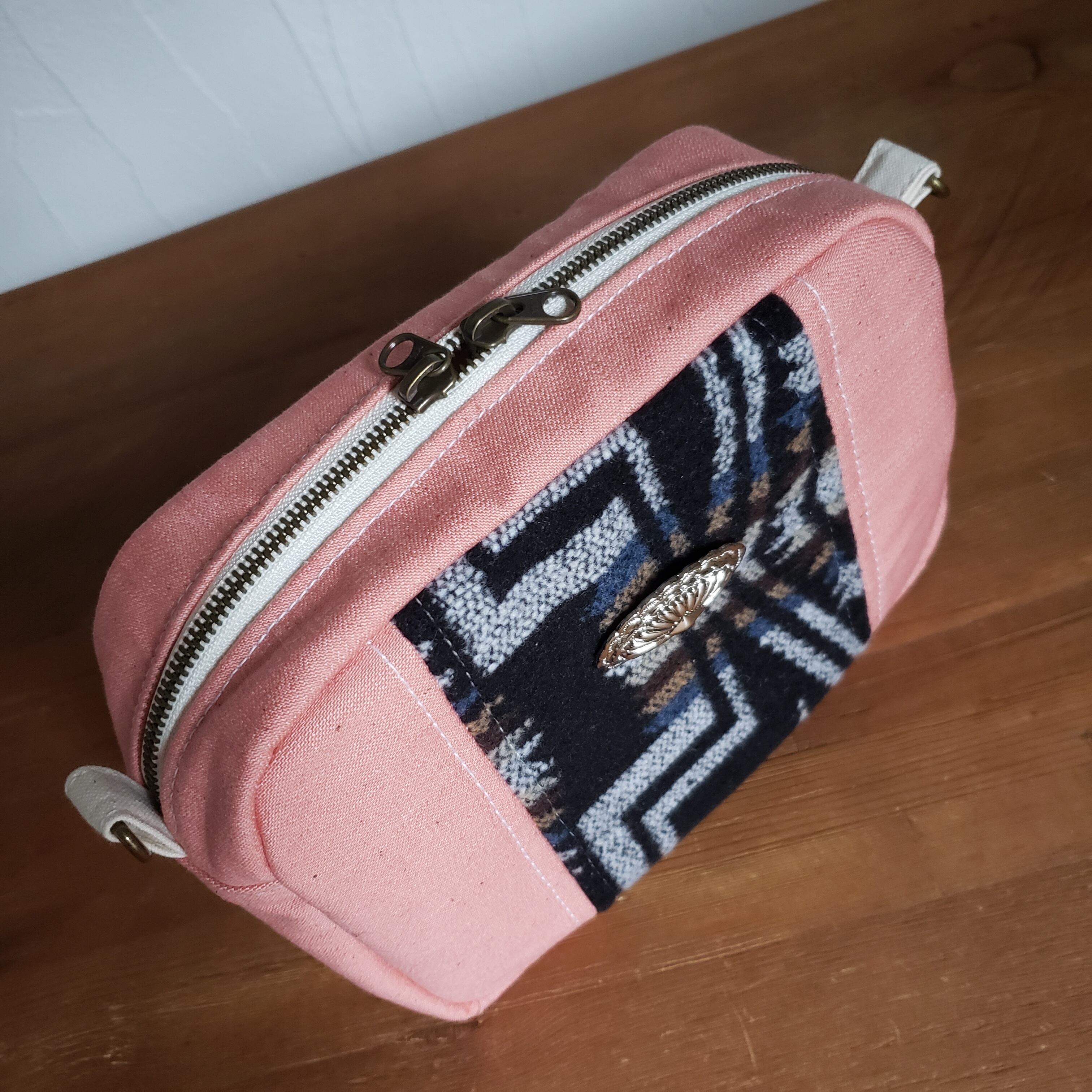 C183*ピンクデニム×ウールタッチのオルテガ柄のポシェット