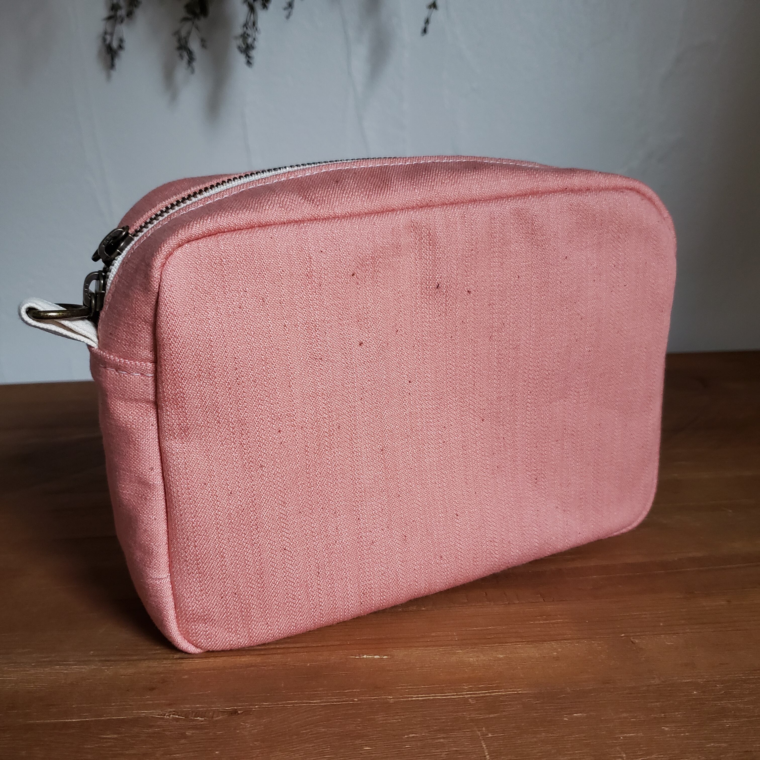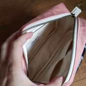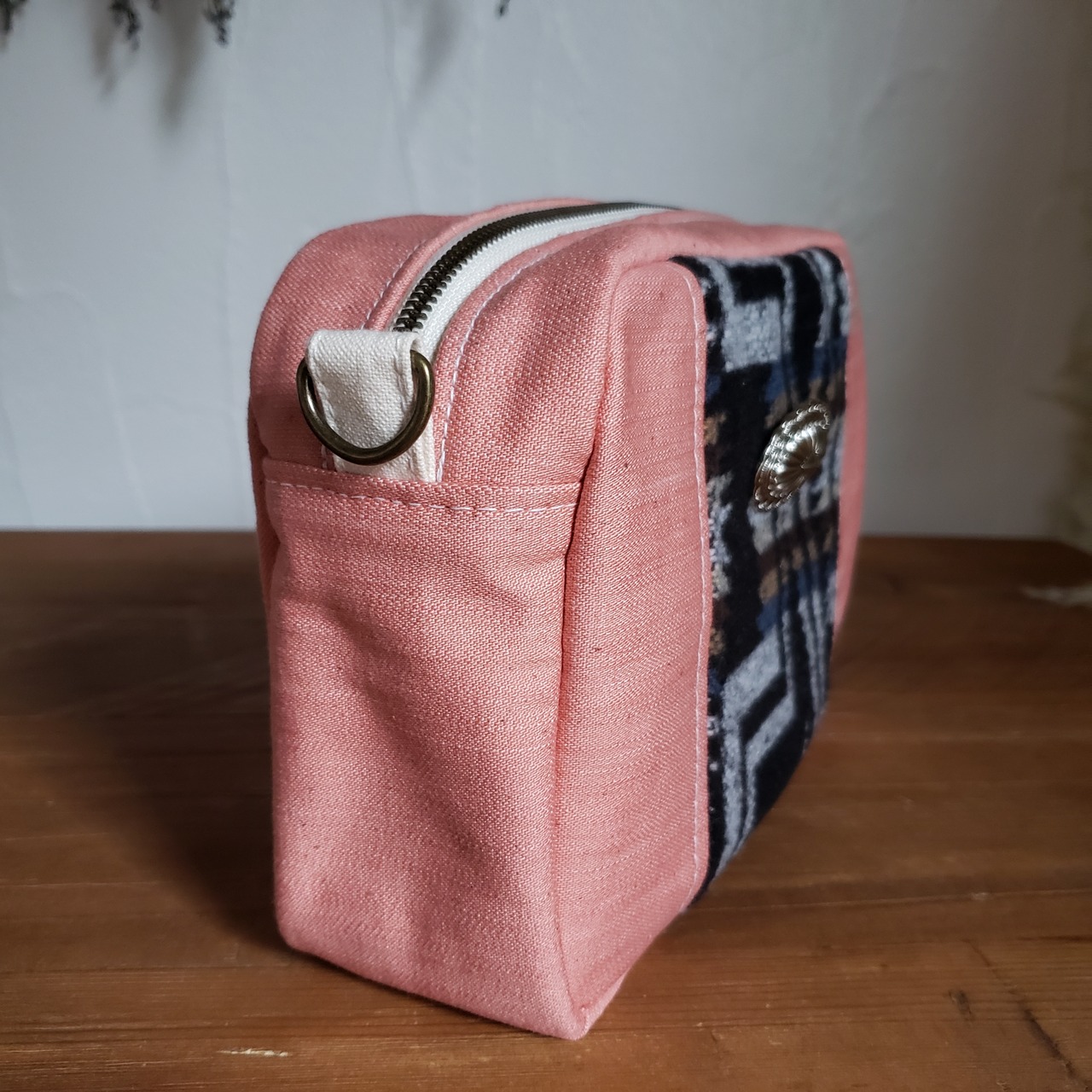 ピンクのデニムとオルテガ柄を組み合わせたポシェットです。