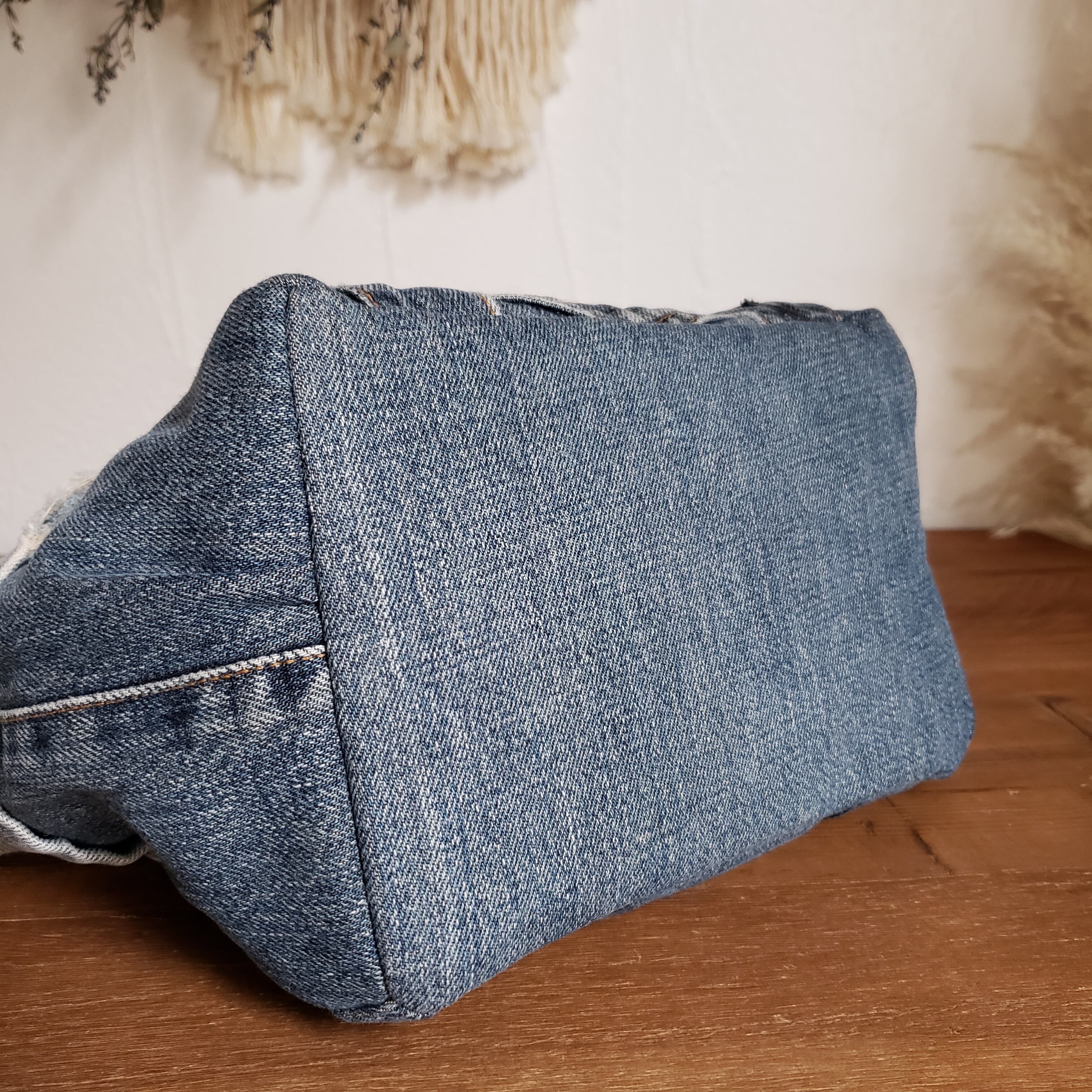 ヴィンテージデニムを使用しており、古着ならではの風合いや色落ちを楽しんでいただけたらと思います♪